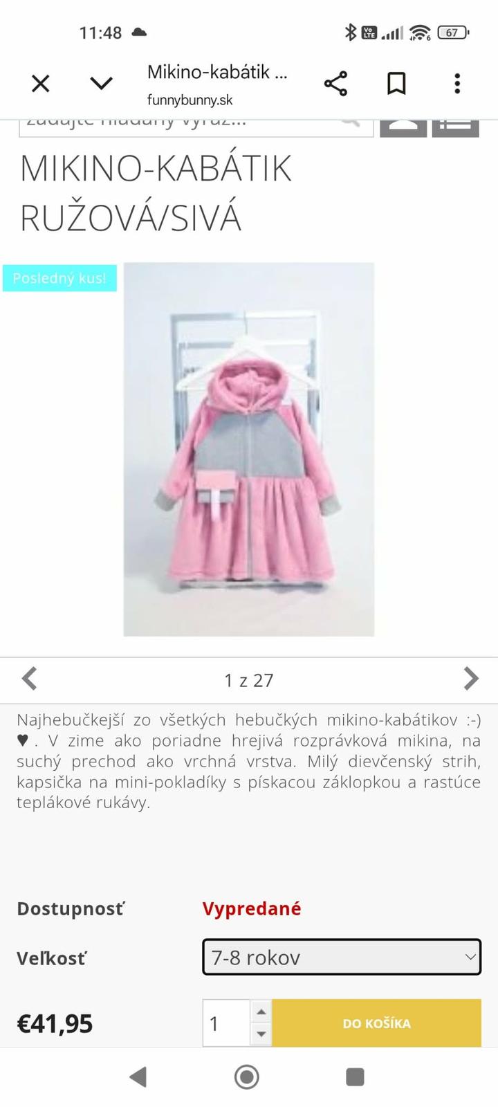 značky Next veľkosti od 98 po 116 sú v cene 31,5€ veľkosti od122 po 140 sú v cene 35,5€ veľkosti od 146 po 152sú v cene 39,5€ veľkosti od 158 po 170sú v cene 42.5€ na objednávku dodanie je okolo 8-...