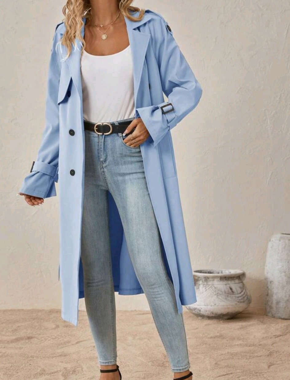 Dámsky JEANS kabát hit tejto sezony, hodi sa k nohaviciam i šatam, zapínanie na gombíky, opasok, mäkulinká riflovina, elastická, veľ. XS, S, M L,XL, XXL, pôvodná cena 39.90 €