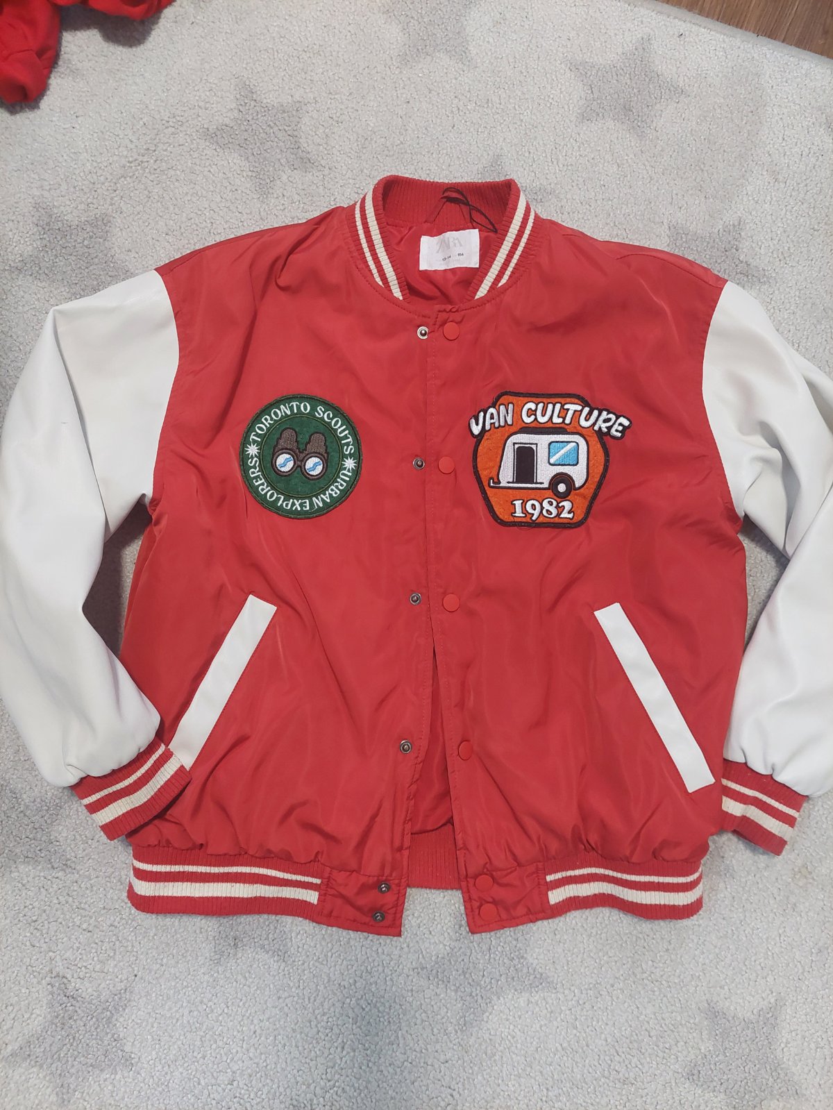 Baseball bunda zn. Zara, velk. 164 (aj zodpoveda). Je nosena s vela dalsimi, bez poskideni, bezne znamky nosenia. Zapinanie na "cvoky", zvnutra zateplena flisom.
