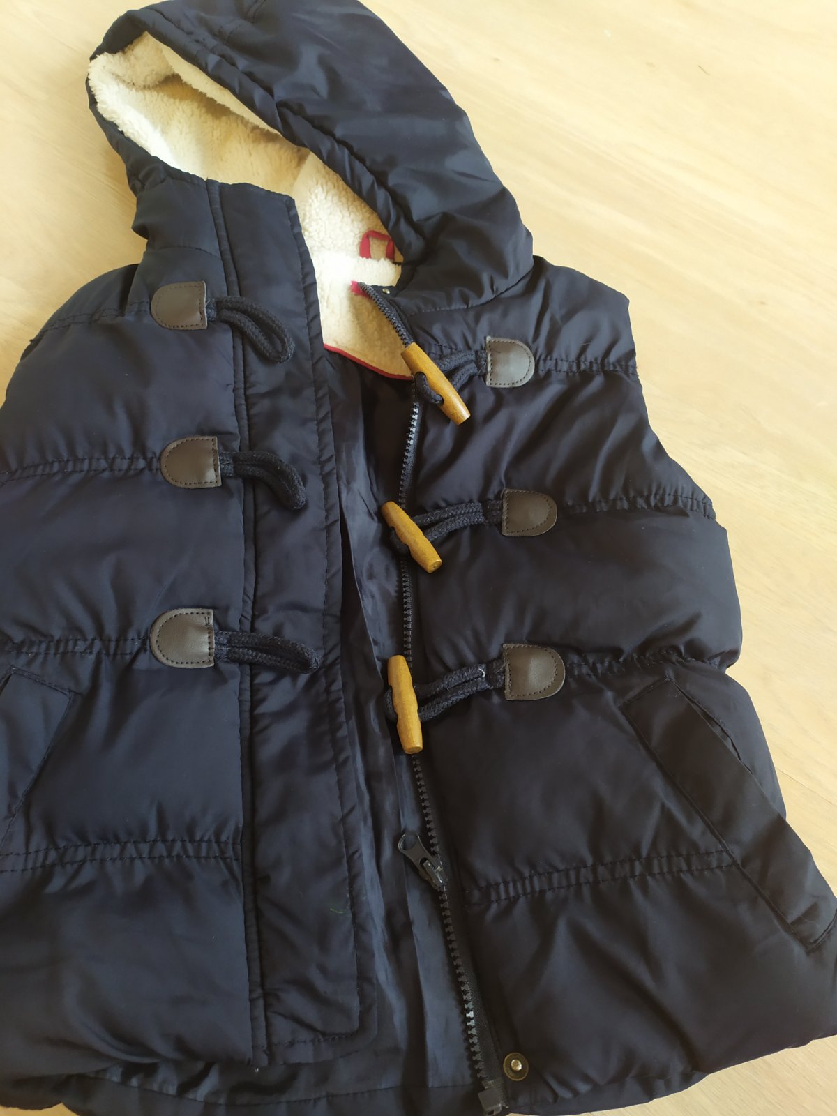 Ponúkam na predaj krátko nosenú vestu po 1. dieťati. Veľkosť 128/134. Kapucňa sa dá odopnúť.