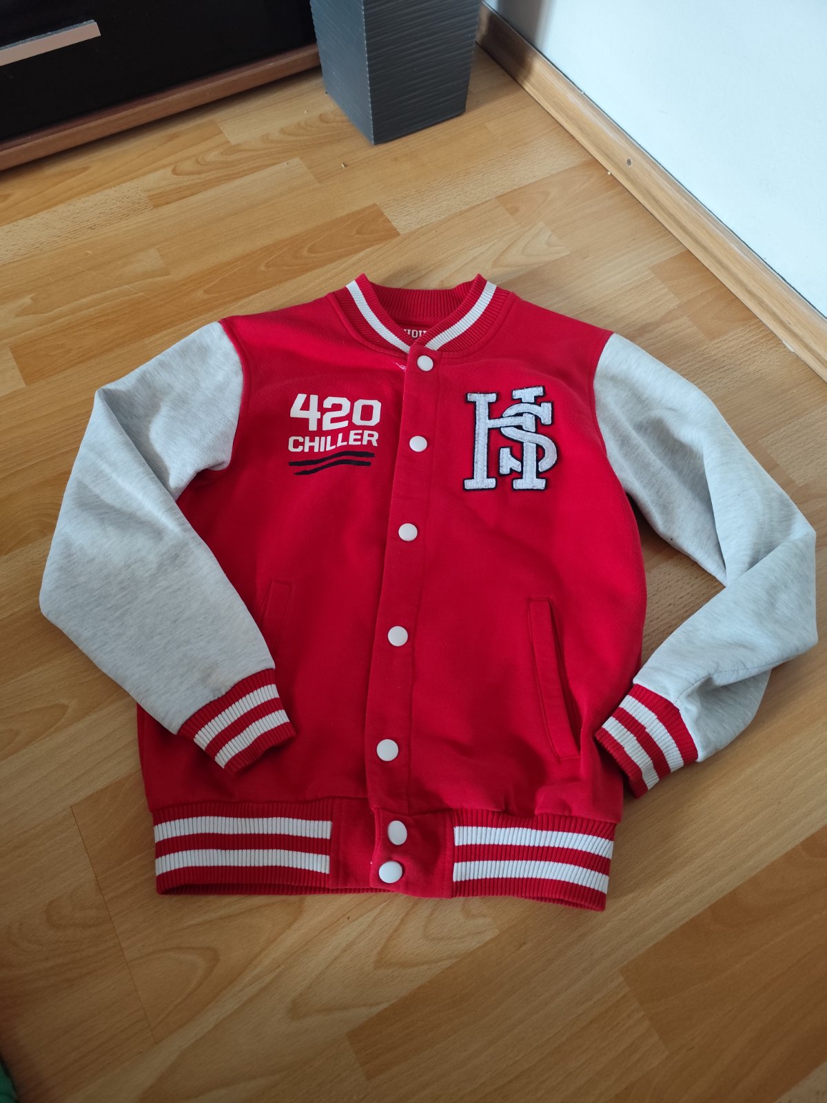 Bunda červeno sivá.... dĺžka 61cm, ramená 44cm,rukáv od ramena 60cm, šírka 2x48cm