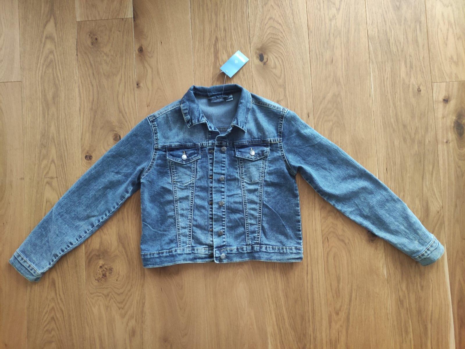 Pekná nosená rifľová bunda kombinovaná s mikinou. Celková dĺžka rukáva od výstrihu 67cm , šírka pod pazuchami 46cm a celková dĺžka od ZD 49,5cm