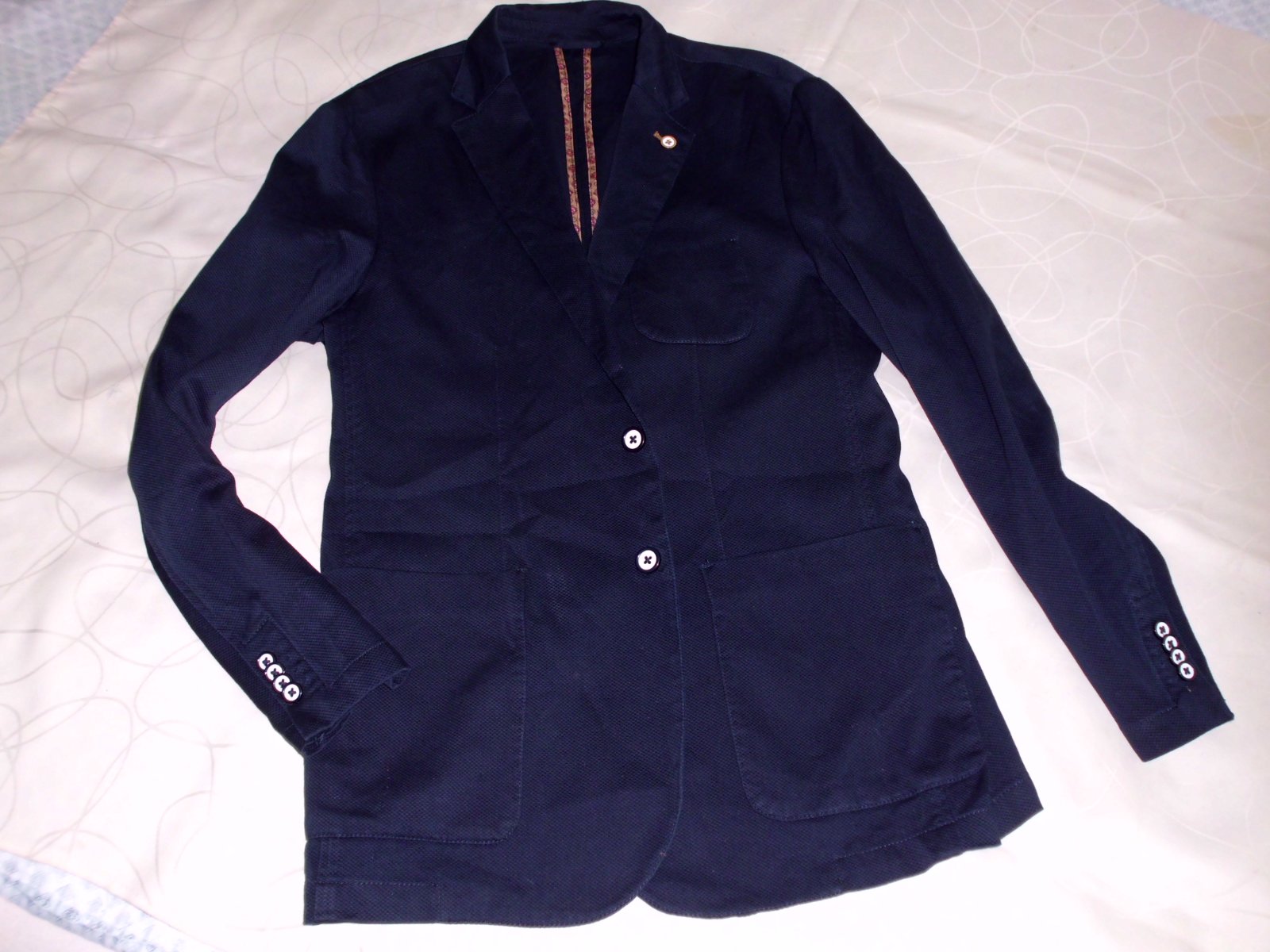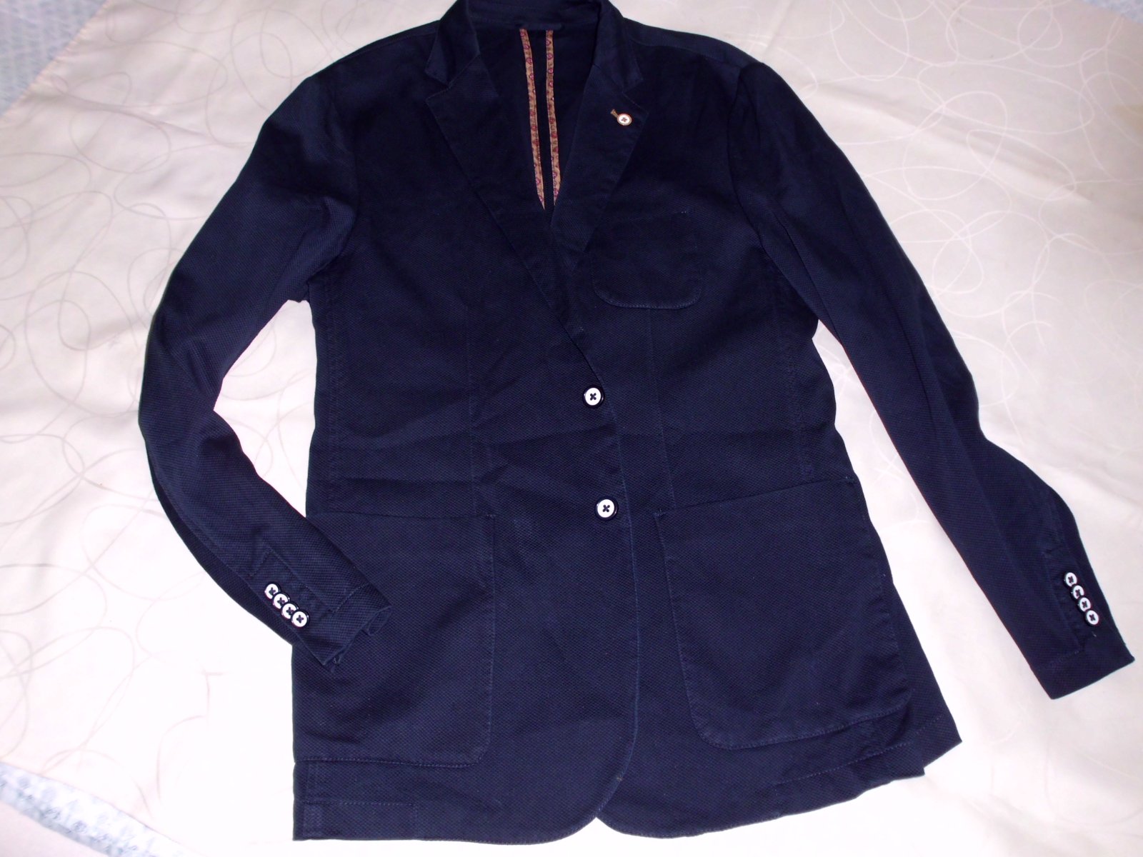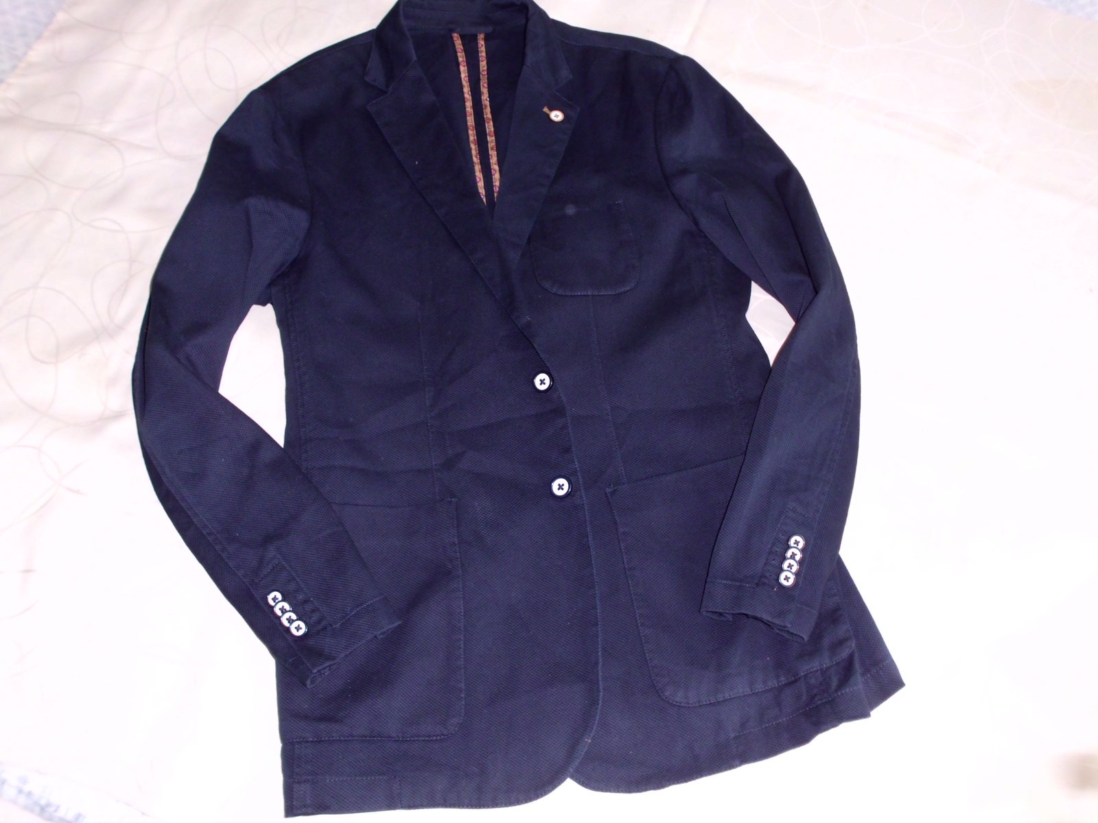 Predám pánske slim sako Piazza Italia v.L , šírka cez prsia 56 cm, dĺžka 77cm, rukáv od pleca 67 cm, plecia 49 cm, tvarované užší strih vzadu rázporky, bez podšívky, príjemná kvalitná stredne hrubá látka, 3 vonkajšie + 1 vnútorné vrecká , farba tmavomodrá , 2x oblečené , top stav ....