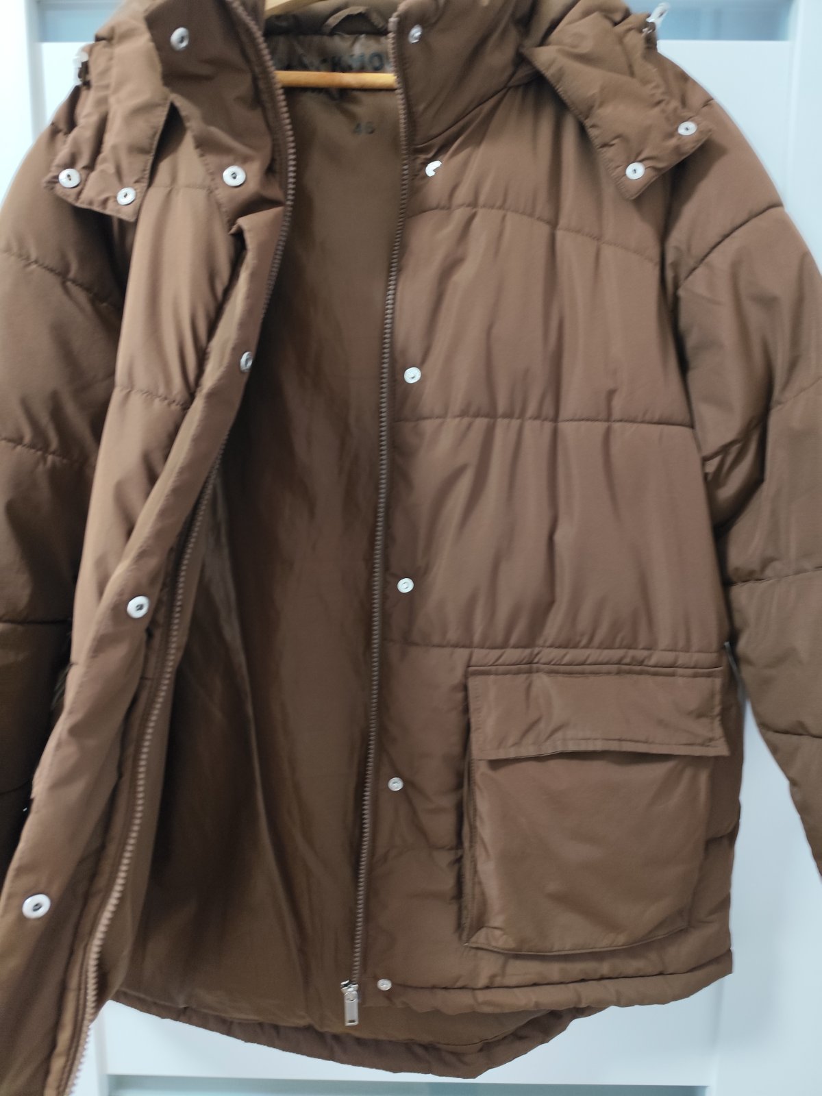 Dámska bunda hnedá, značka Clockhouse, veľkosť 46. Odnímateľná kapucňa. Bola nosena iba jednu sezónu. Bola vyprata, miestami je tá výplň taká ztlacena