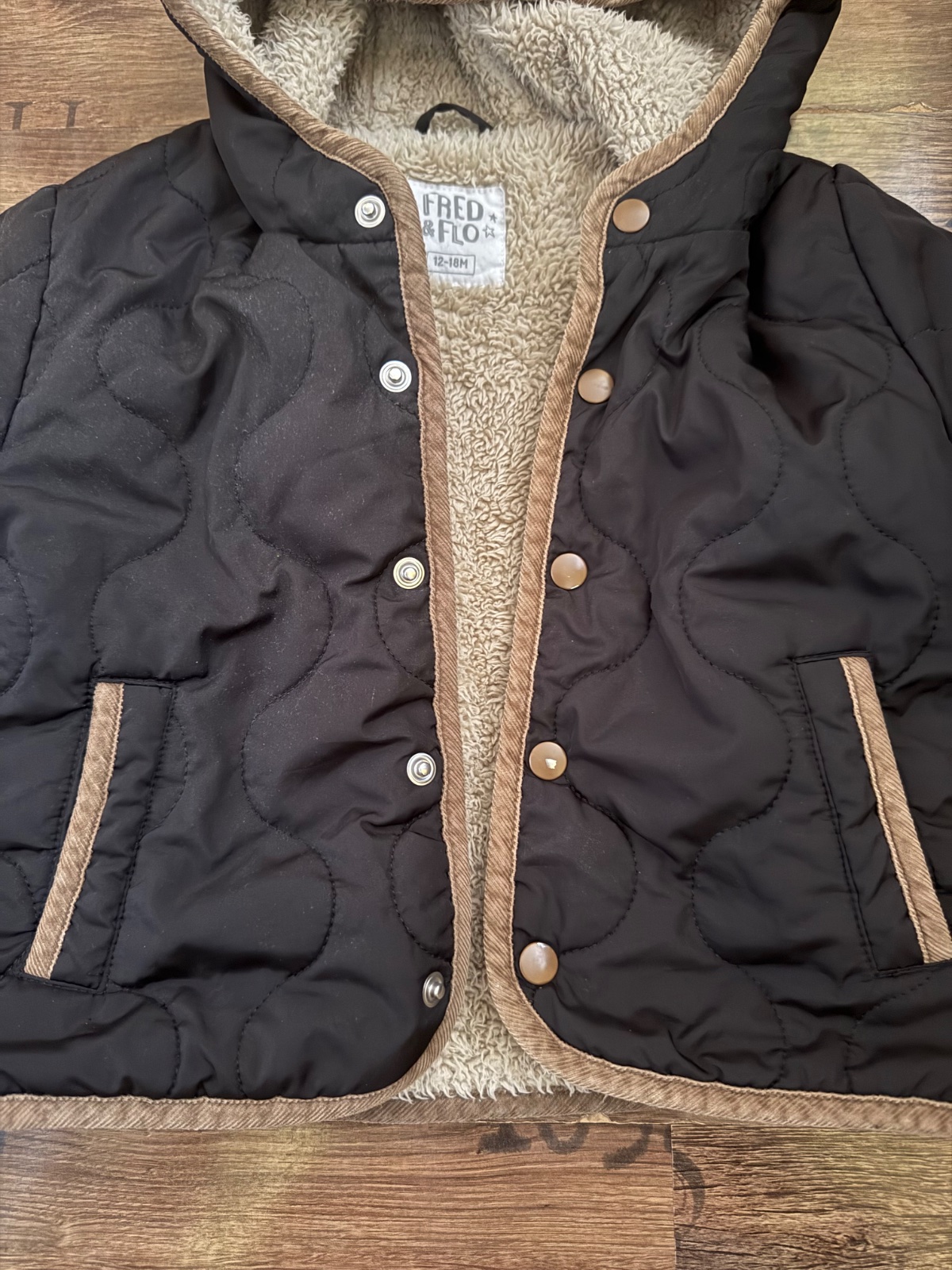 Ponúkam krásnu prešívanú bundičku / kabátik v čiern-hnedej farbe. Značka je Fred & Flo a veľkosť je uvedená na 12-18 mes. ale podľa mňa ponosíte aj dlhšie. Je veľmi príjemná, vhodná na jar, jeseň, či miernu zimu, keďže má vo vnútri vyteplenie. Má kapucňu a vrecká. Bola nosená na striedačku, mali sme ju radi sle naďalej vo veľmi peknom stave, akurát niektoré gombičky jemne ošúchané. Odporúčam. Poštovné podľa taríf.