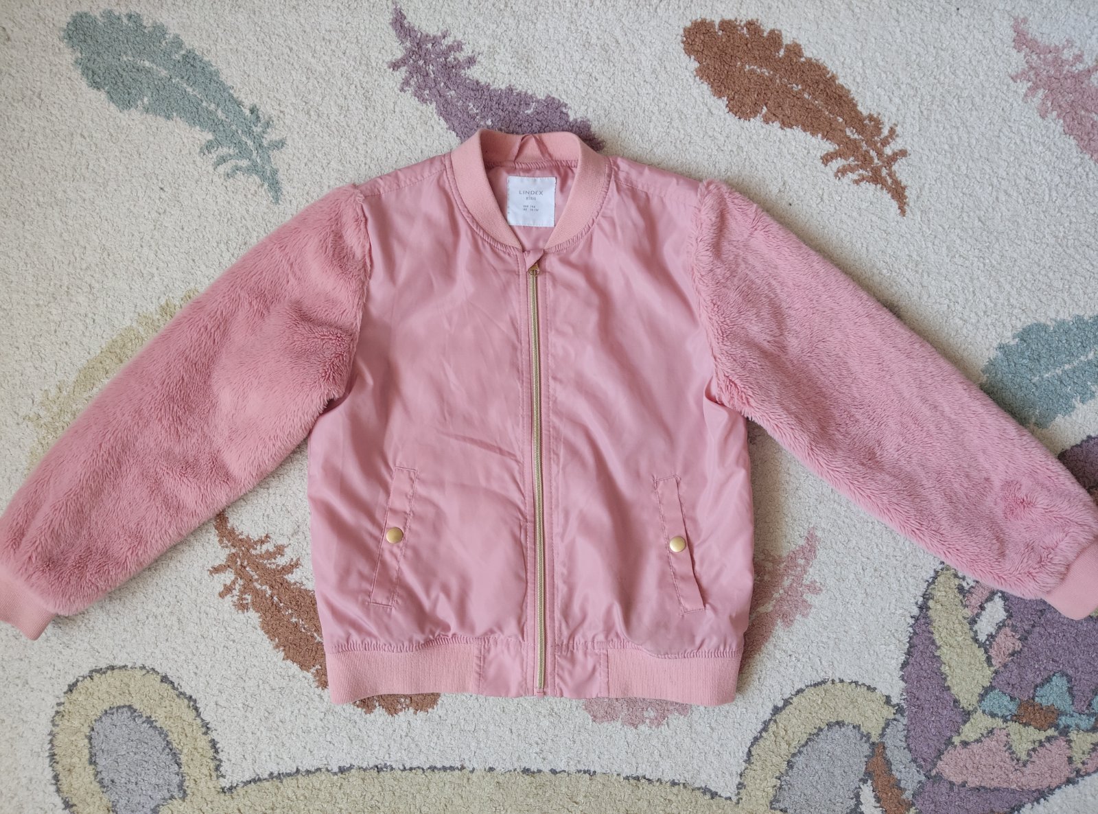 Prechodná bunda po dcérke vo výbornom stave. Dĺžka 56cm, šírka hrudníka 47x2, dĺžka rukáva od krku 64cm, vnútorná dĺžka rukáva 46cm. K cene plus poštovné podľa taríf SP.