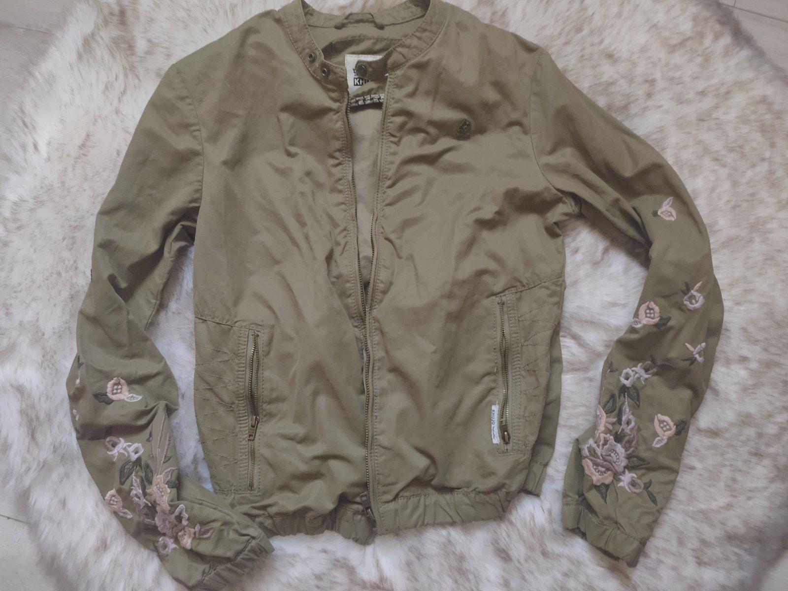 Khujo Značková bunda, nosené pomenej, na kvietkach sú jemné zmolky