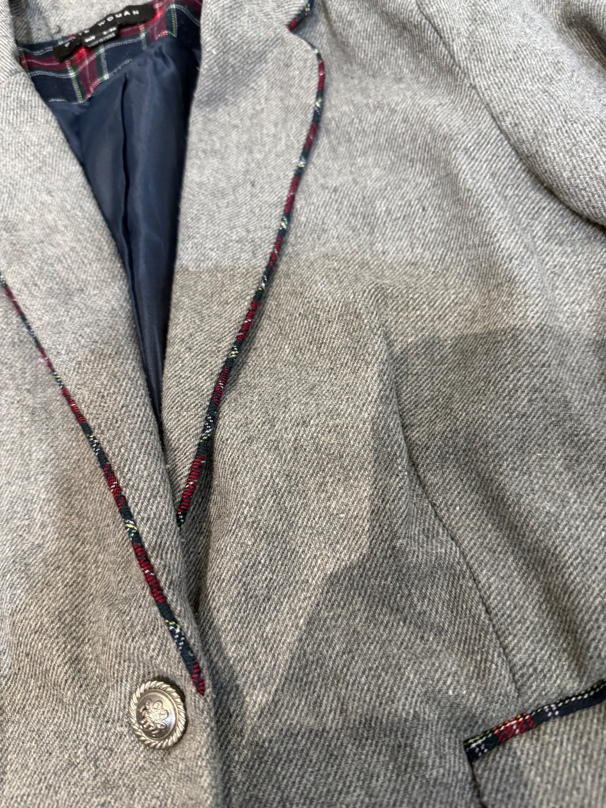 Dámsky kabátik vhodný na prechodné obdobie, ale aj na zimu. Chýba jeden gombík, ktorý mám doma v prípade záujmu samozrejme prišijem.