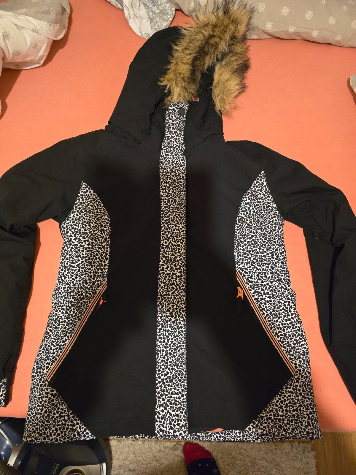 Nová, originál, nepremokavá, snežný pás, vodný stĺpec 10 000 mm. Bunda cez hlavu. Mám k nej aj nohavice. Buď kvietkavé alebo čierne. Kožušinka na kapucni sa dá odopnúť. Cena 139 EUR
