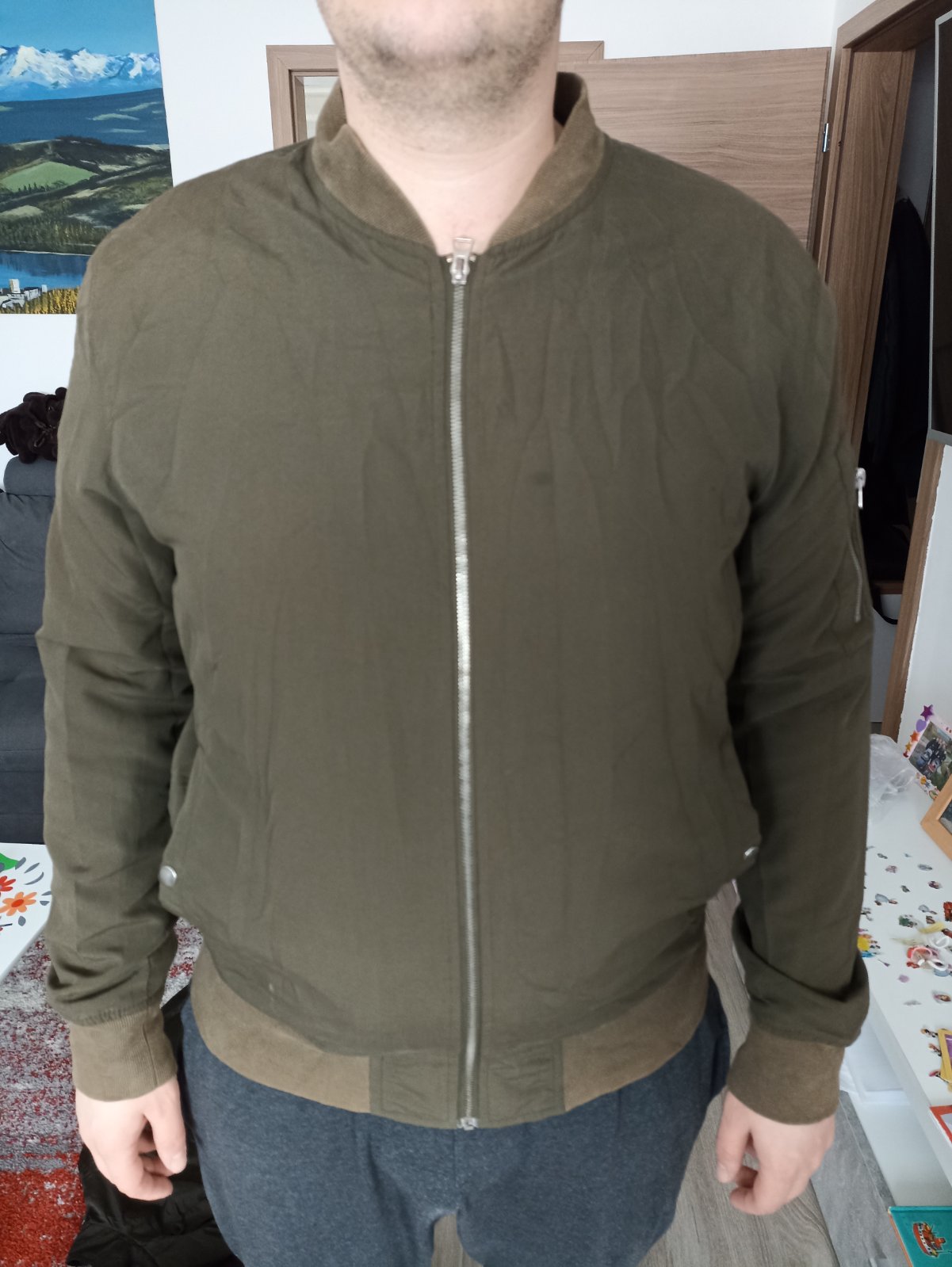 Nosená párkrát, jediný nedostatok sú že majú zažltnuté patenty na rukávoch, vidno to iba z blízka, veľkosť písaná XXL ale skôr XL, nafotené rozmery