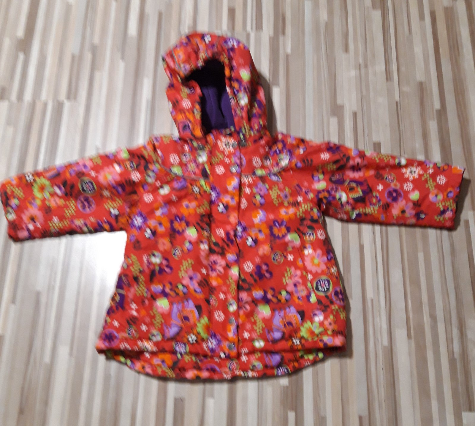 Teplucka vetrovka pre dievcatko na 18/24 mesiace ,dlha je vzadu 47 cm vpredu 40 cm ,rukav od krku 41 cm a cez prsia ma 37x2 ,sita do acka ,malo nosena ako nova