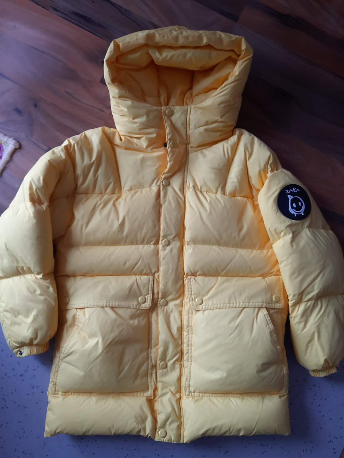 Predám zimnú bundu zn. Zara. Veľkosť 146/156. Poškodenia- kvôli nim je nízka cena, až na tie fľaky je bunda bez iných poškodení. Farba najviac zodpovedá foto č3, výzarná žltá. V mojom bazáriku k nej nájdete aj nohavice. Bundu treba vyčistiť, nakoľko nemám sušičku, doteraz čistená v čitiarni.