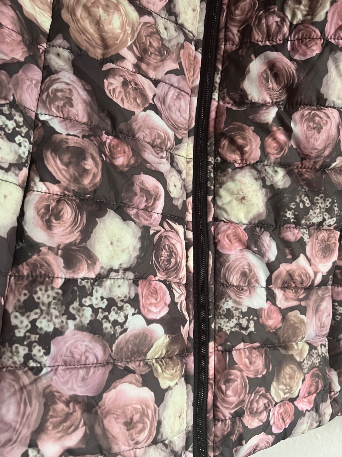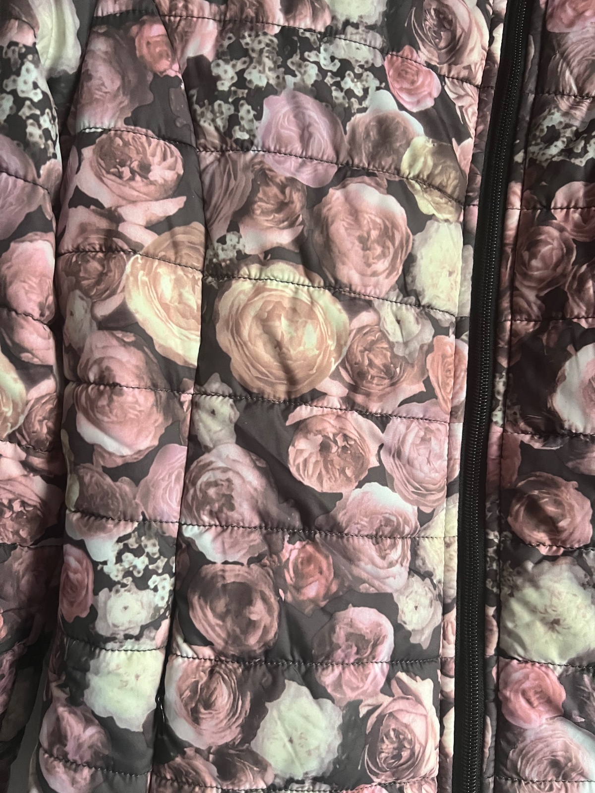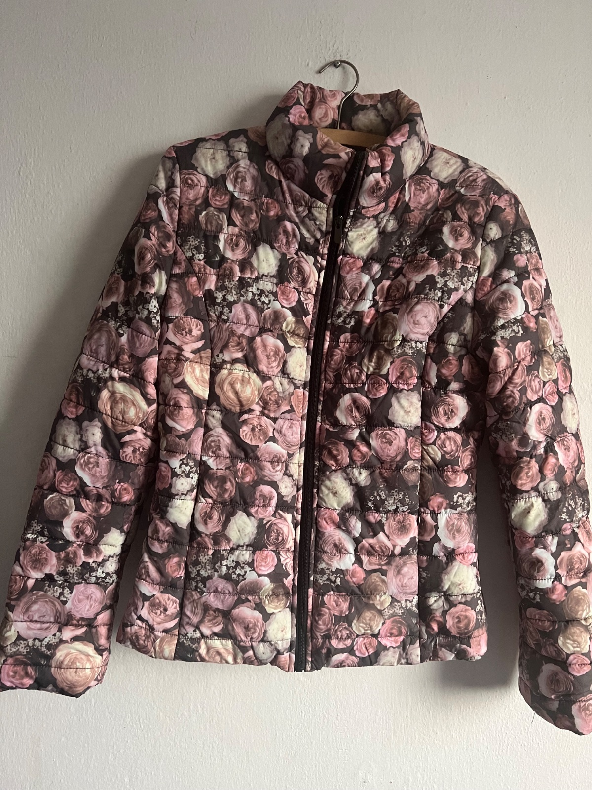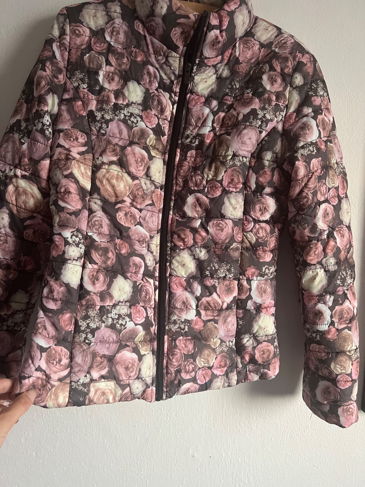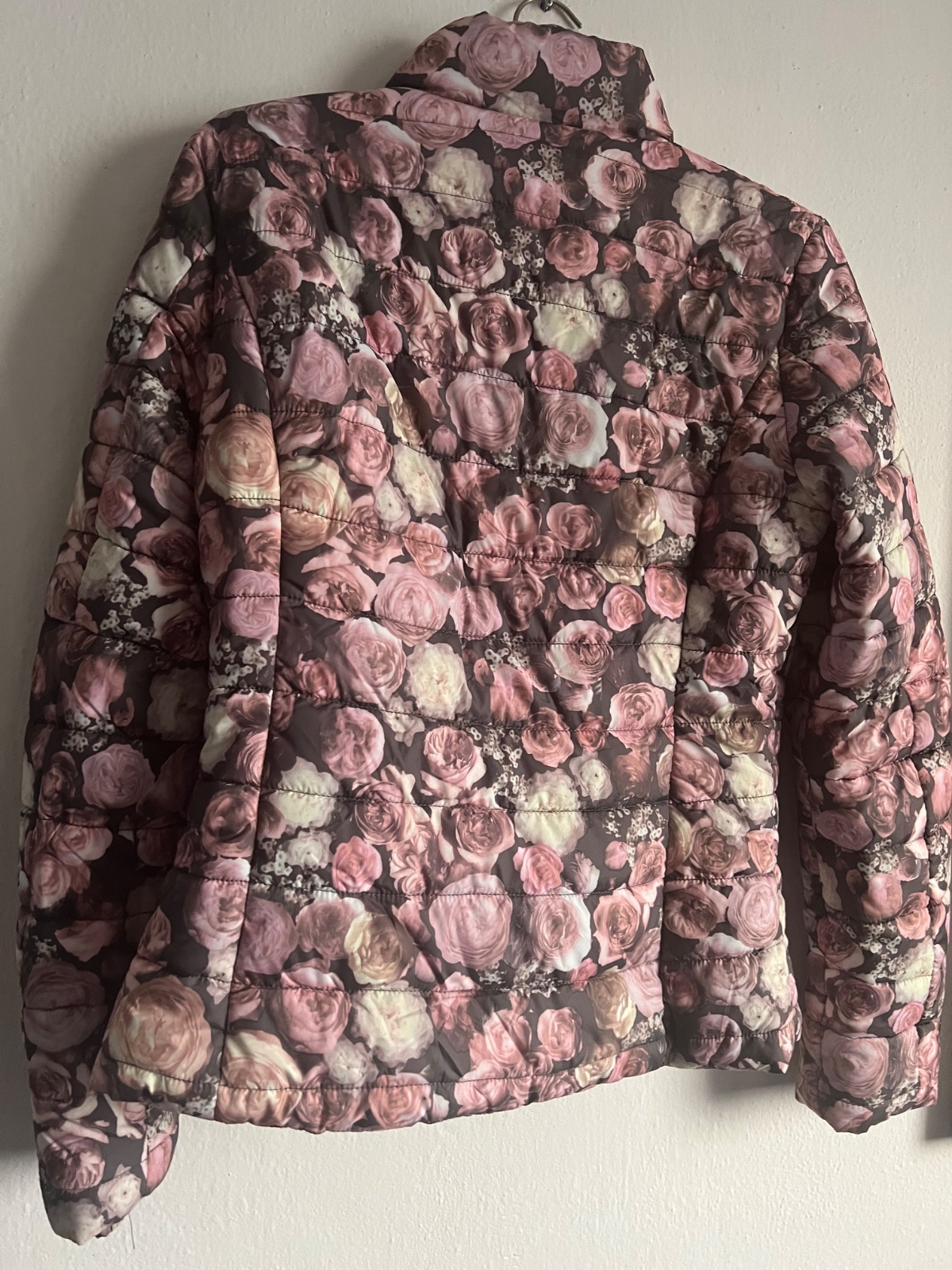 Krasna ruzickova bundicka, velk sedi S/M, dlzka 62, pazuchy cca 49-50, oblecena 1x, cena 17
