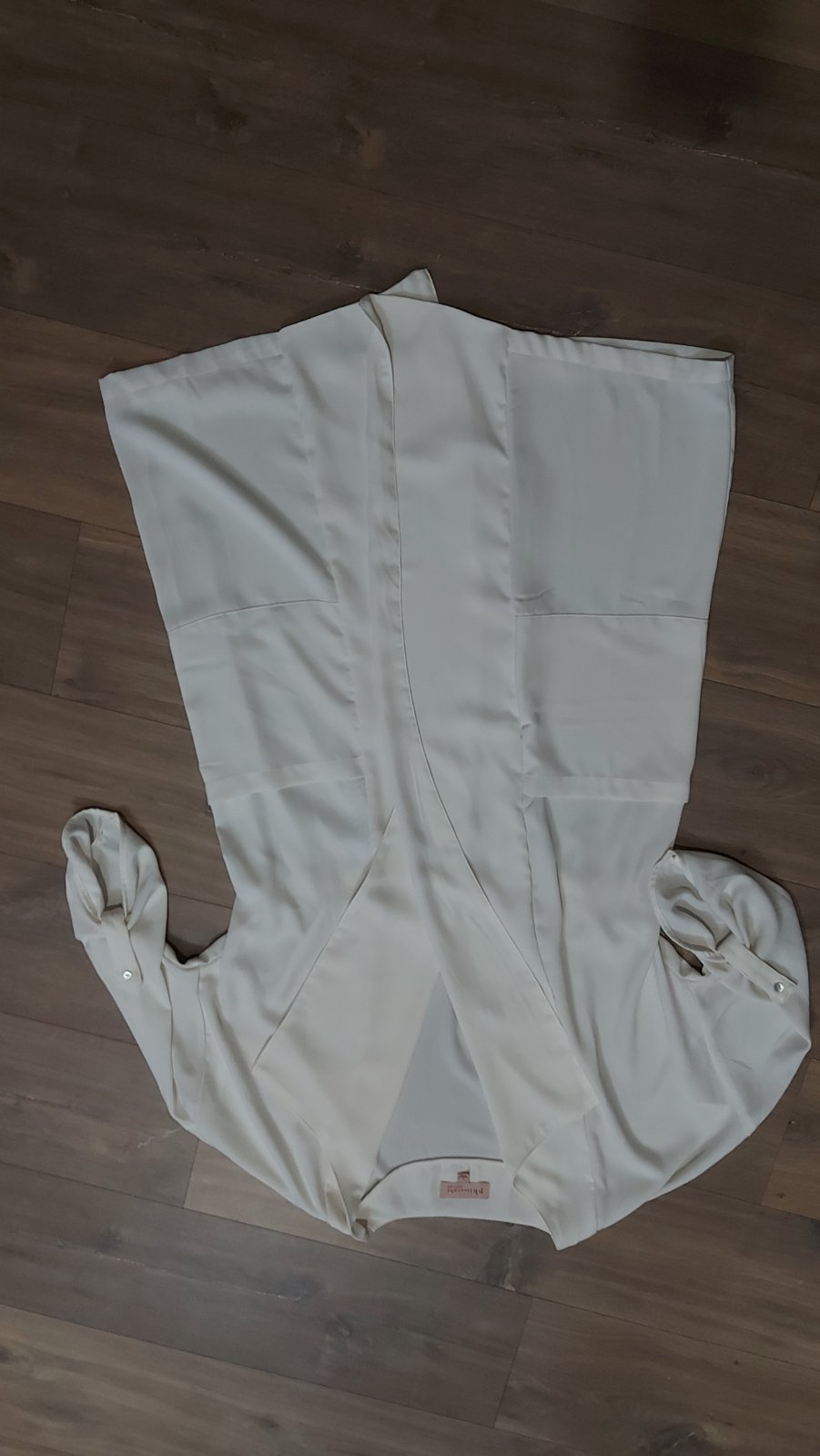 Nema ziadne zapinanie.je to na teplejsie obdobie kar leto jesen.povodna cena okolo 100dolarov.paradny stav.farba taka jemnucko maslova.100%polyester.toto je tazko merat.proste sedi na velkost L