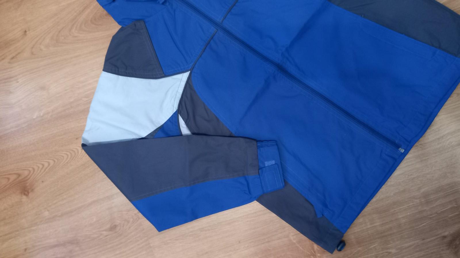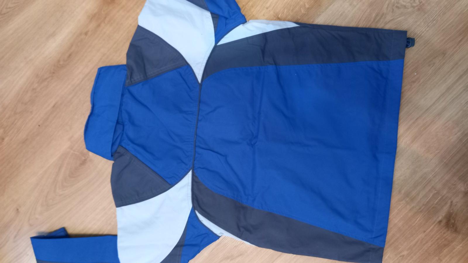 málo nosená, výborný stav. farby sivá, modrá. Podšitá balónovinou. rukáv od krku 69cm, dĺžka 61cm.