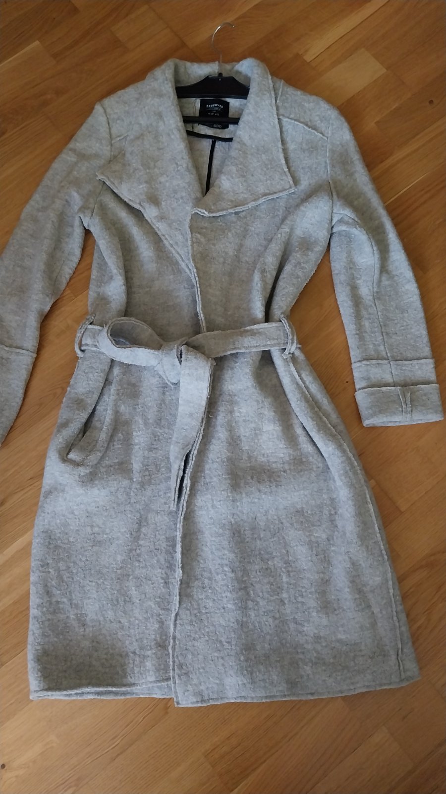 Sivý prechodný zavinovací kabát na prechodné obdobie. Nie je podšitý, ale je s podielom vlny, takže je teplý. Párkrát oblečený, super stav. Sedí na veľ. S/M/L