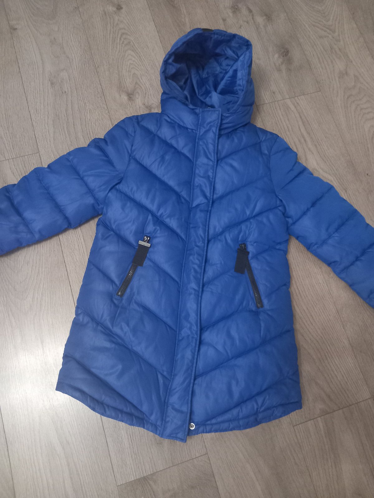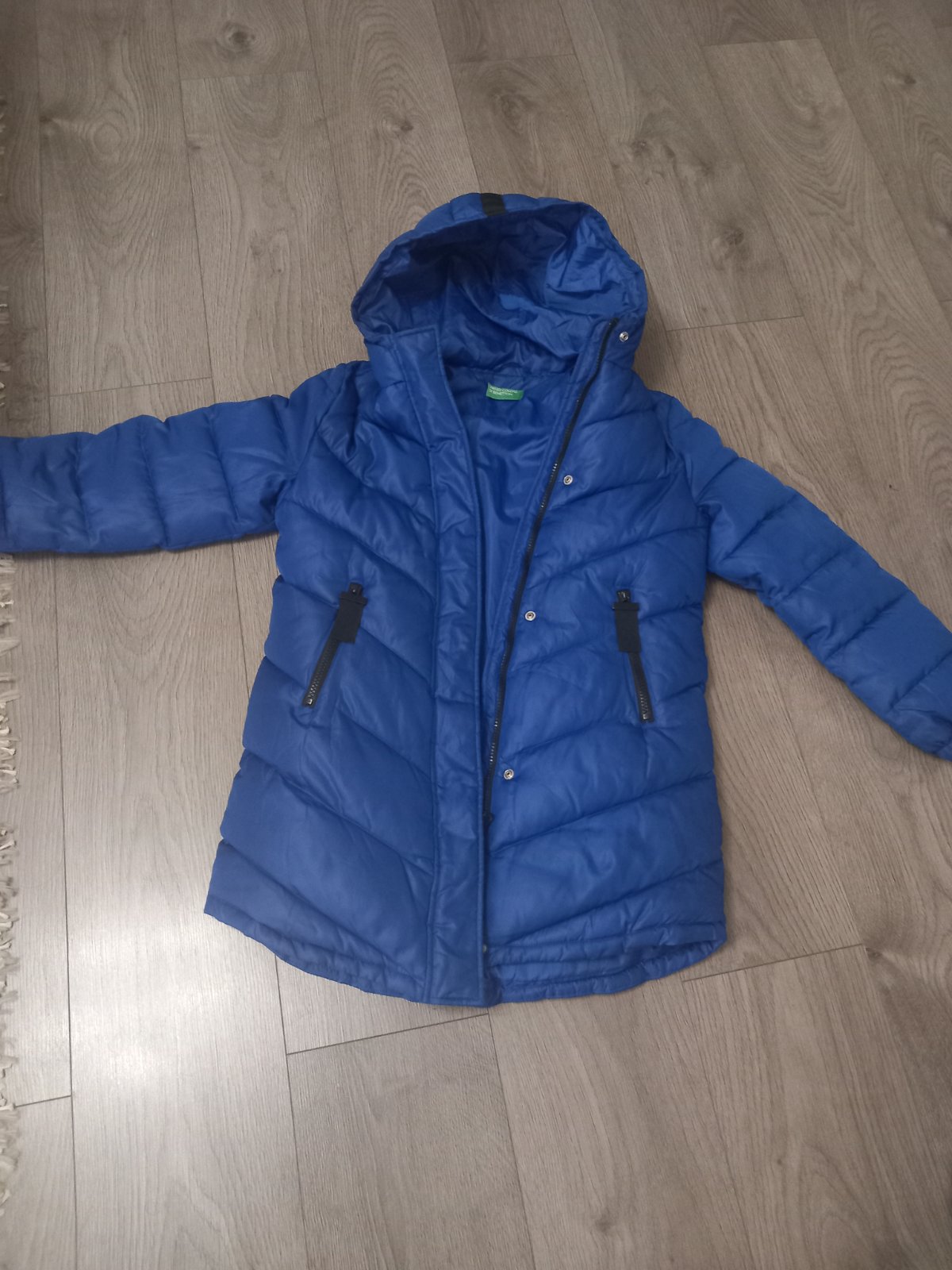 Teplá vetrovka Benetton s kapucňou, píšu na výšku 150cm, vek 10-11 rokov. Celková dĺžka 65cm. Rukáv 55cm. Vhodná aj pre útlu ženu.