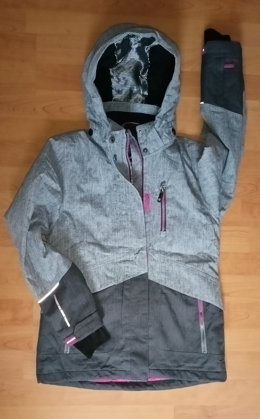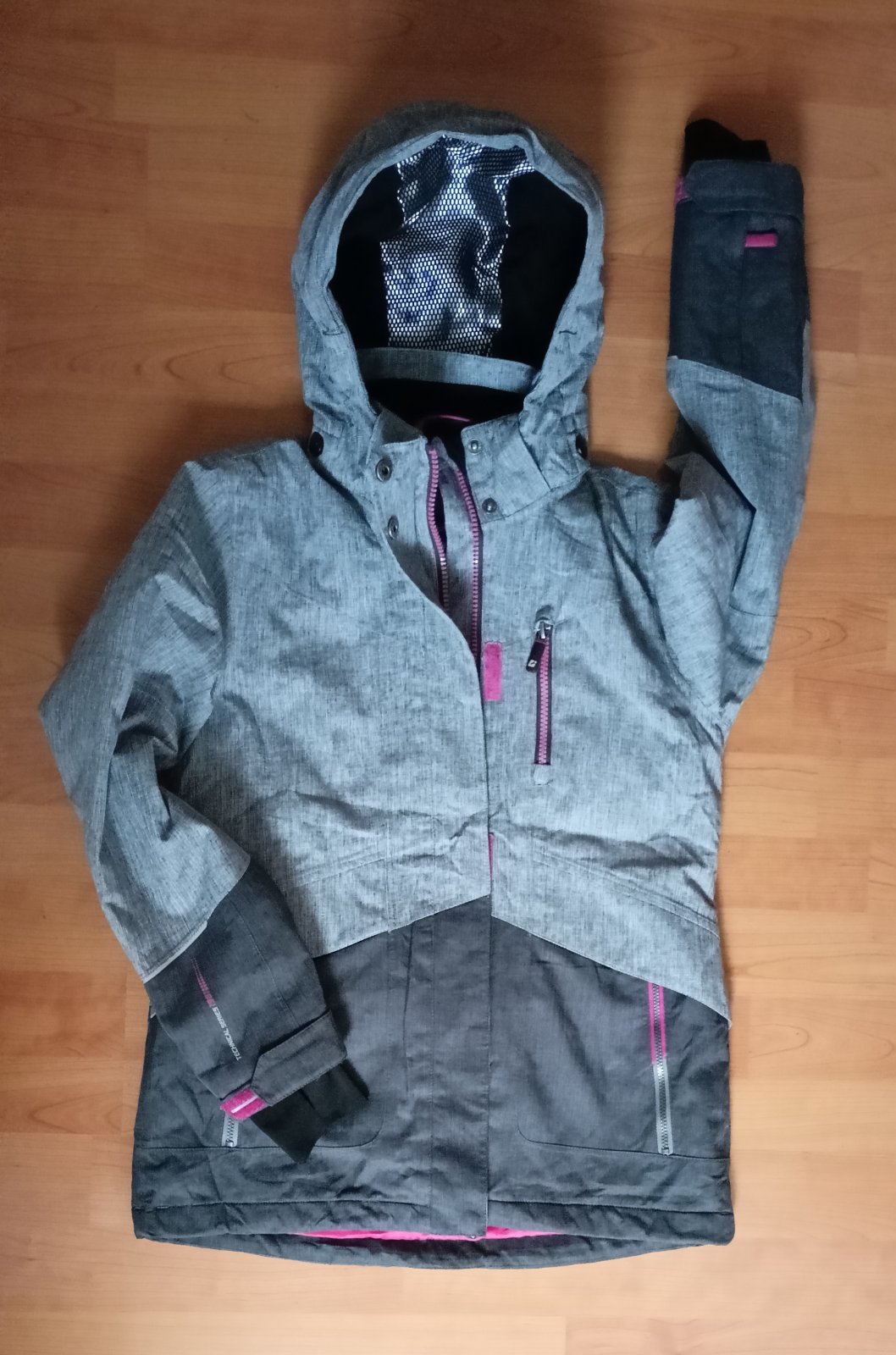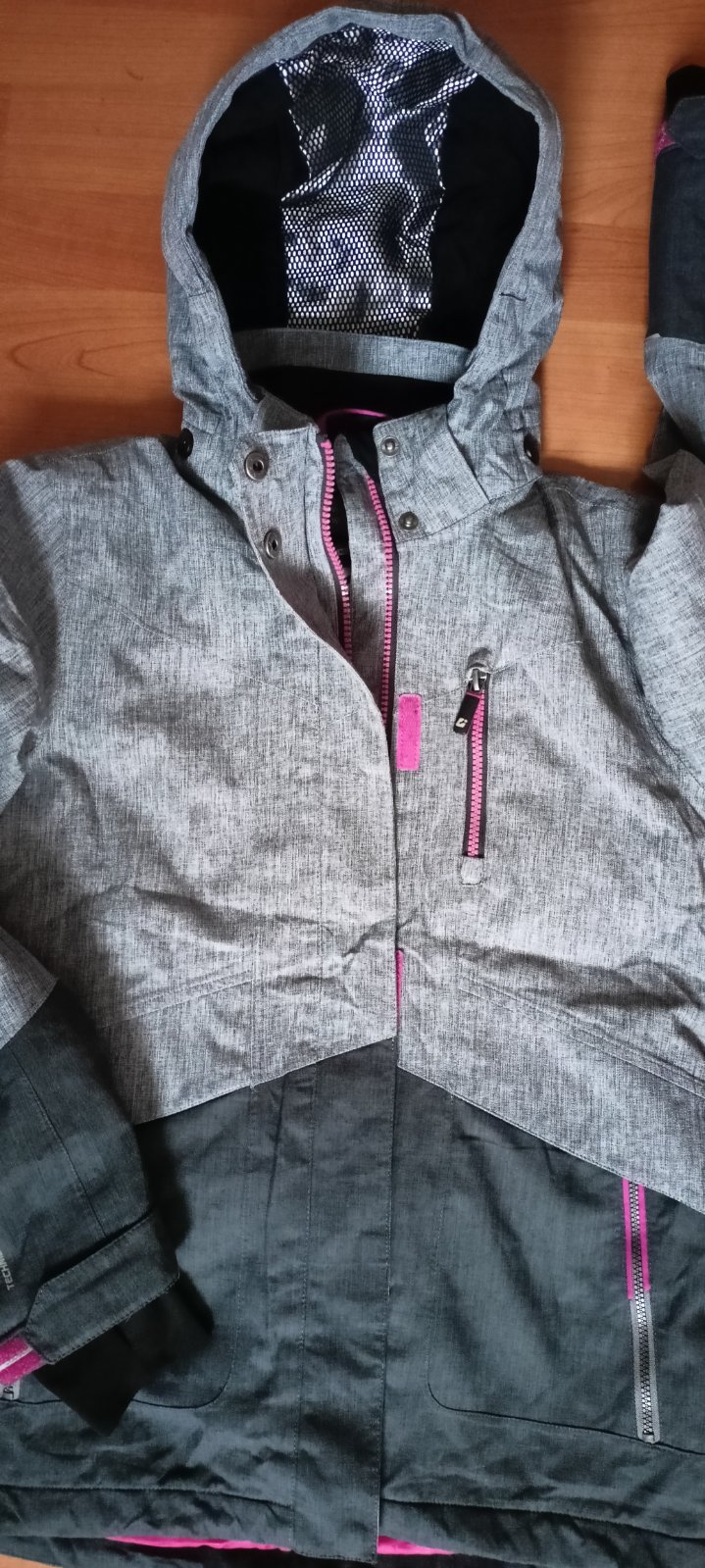 Nosena 1 zimu na striedačku z druhou Lahsie futrovana a zateplena flisom. Na gombicku na vacku suchnuta. Na rukavoch od podku jemne stopy nosenia. Vid foto. Inac ok.