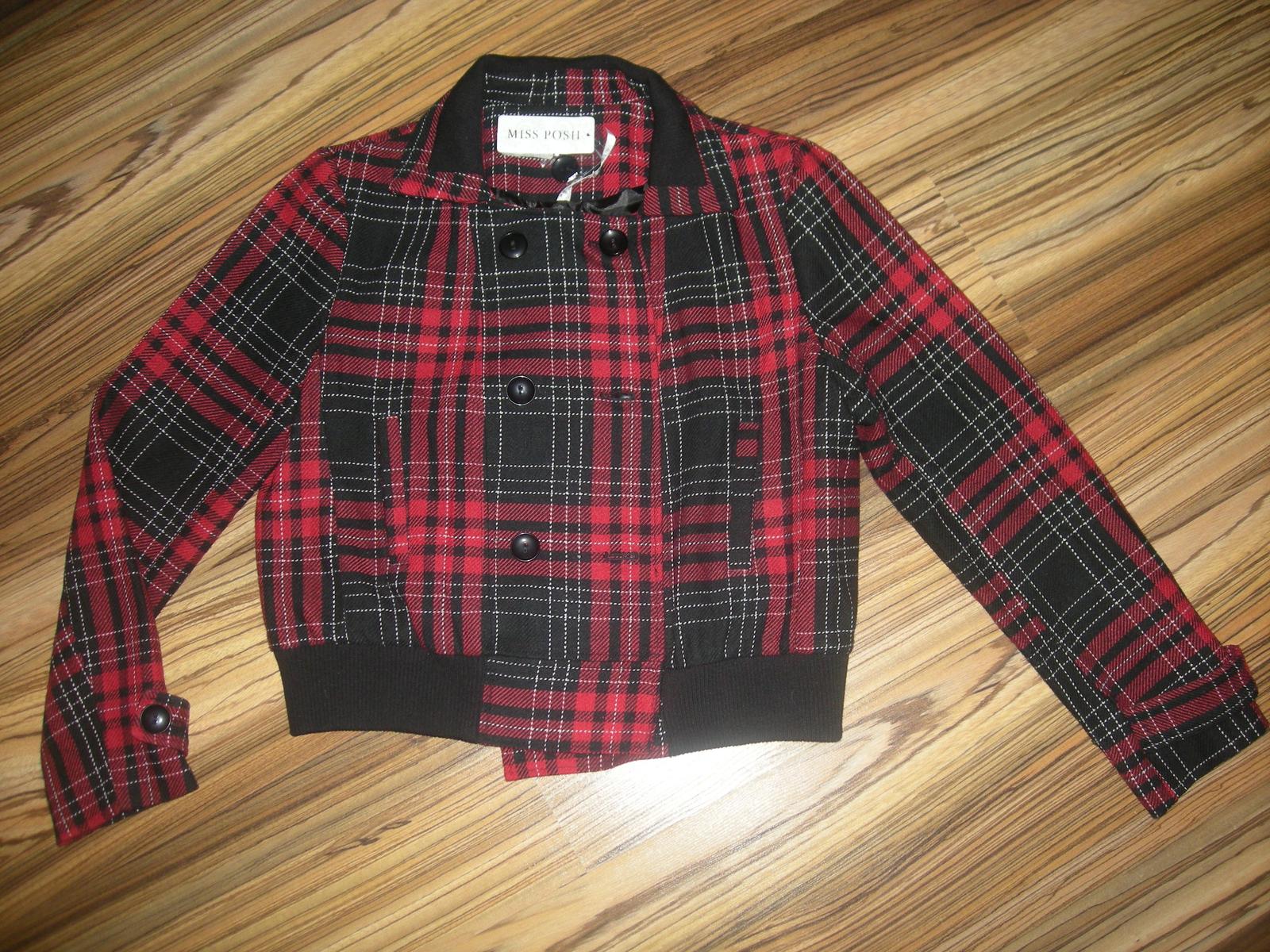 pekný kabátik zn. Miss Posh, kupovaný na nete, nesadla velkosť - v. píšu 12, 93% polyester, 7% bavlna, taký tenší