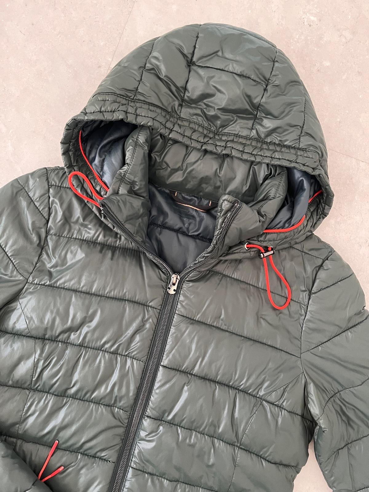 Dámska značková bundička na prechodné obdobie. Zapínanie je vpredu na gombíky. Dĺžka je 54cm,obvod hrudníka je 41x2cm a obvod pása je 40x2cm. Dĺžka rukáva je od krku 67cm.