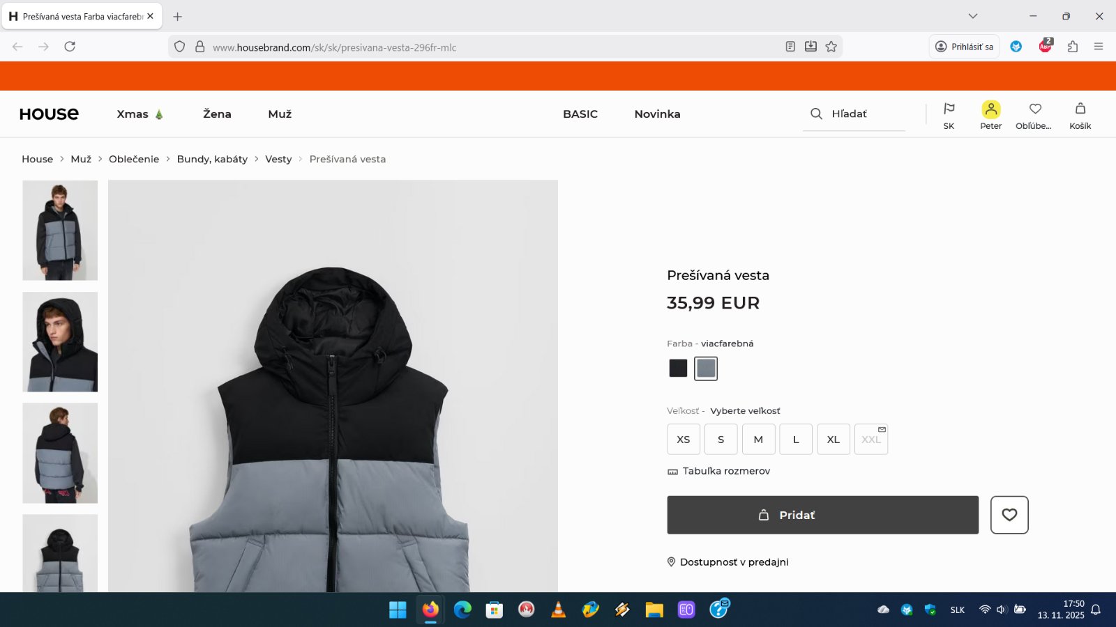 Ďalej predám pánsku dvojfarebnú vestu s kapucňou, veľkosť L. Vesta je zateplená, má 2 vonkajšie vrecká na zips, 1 vnútorné vrecko na suchý zips, sťahovacie patenty na kapucni a naspodku vesty. Vesta je nová. Cena 20eur.