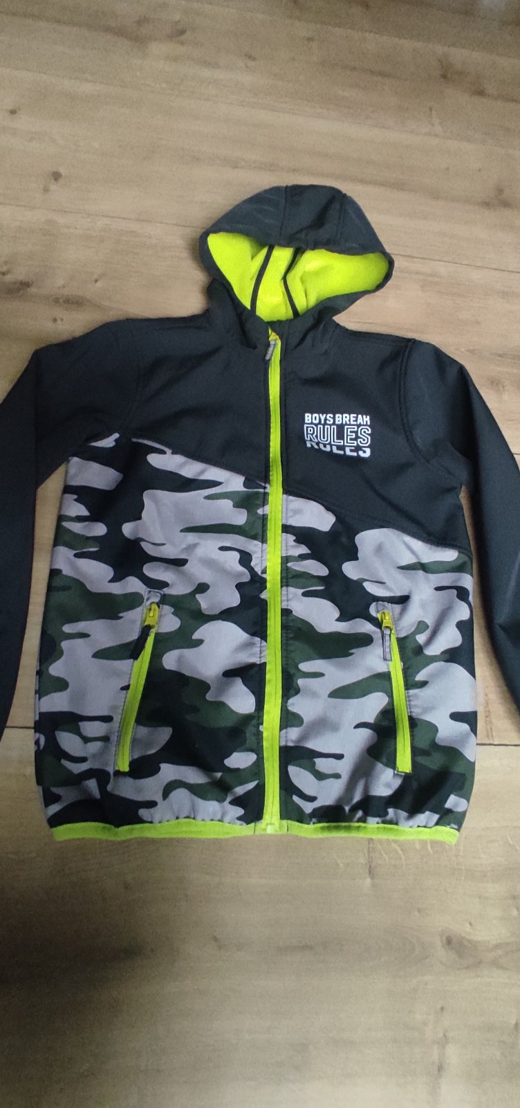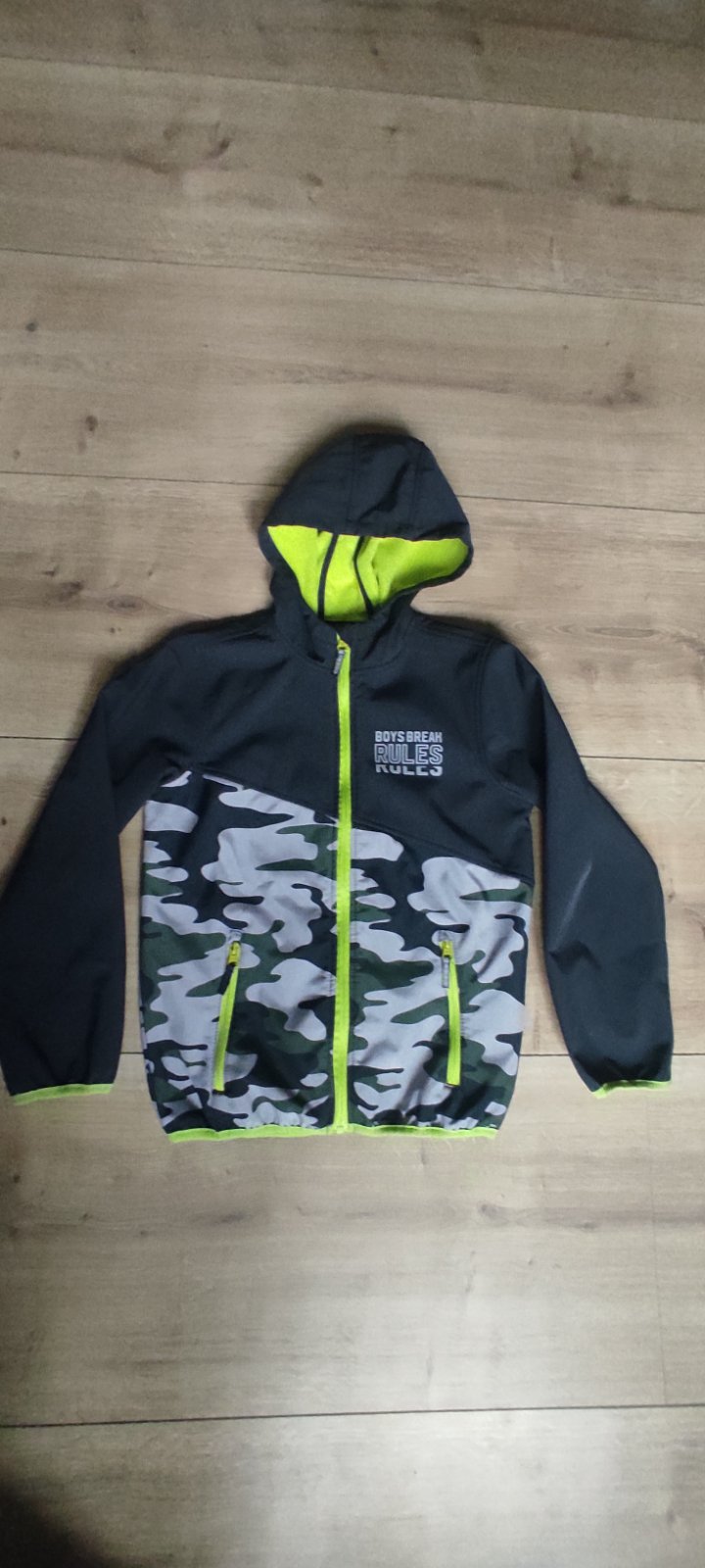 Prechodná bunda vo veľmi dobrom stave. Veľkosť 134/140. Kapucňa odnímateľná.