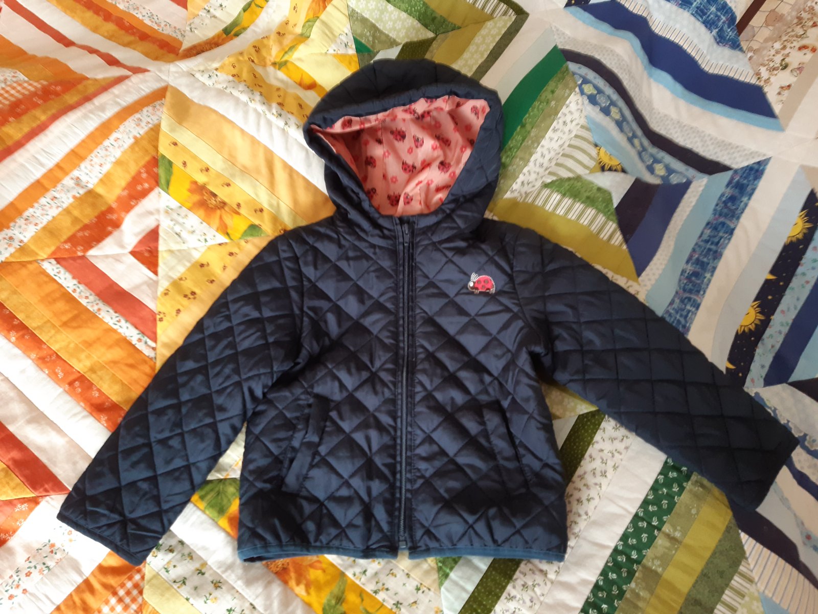 Prakticka bundicka s tenkym vatovan na prechodne obdobie. Vhodna aj do skolky. Pekny stav bez poskodeni.