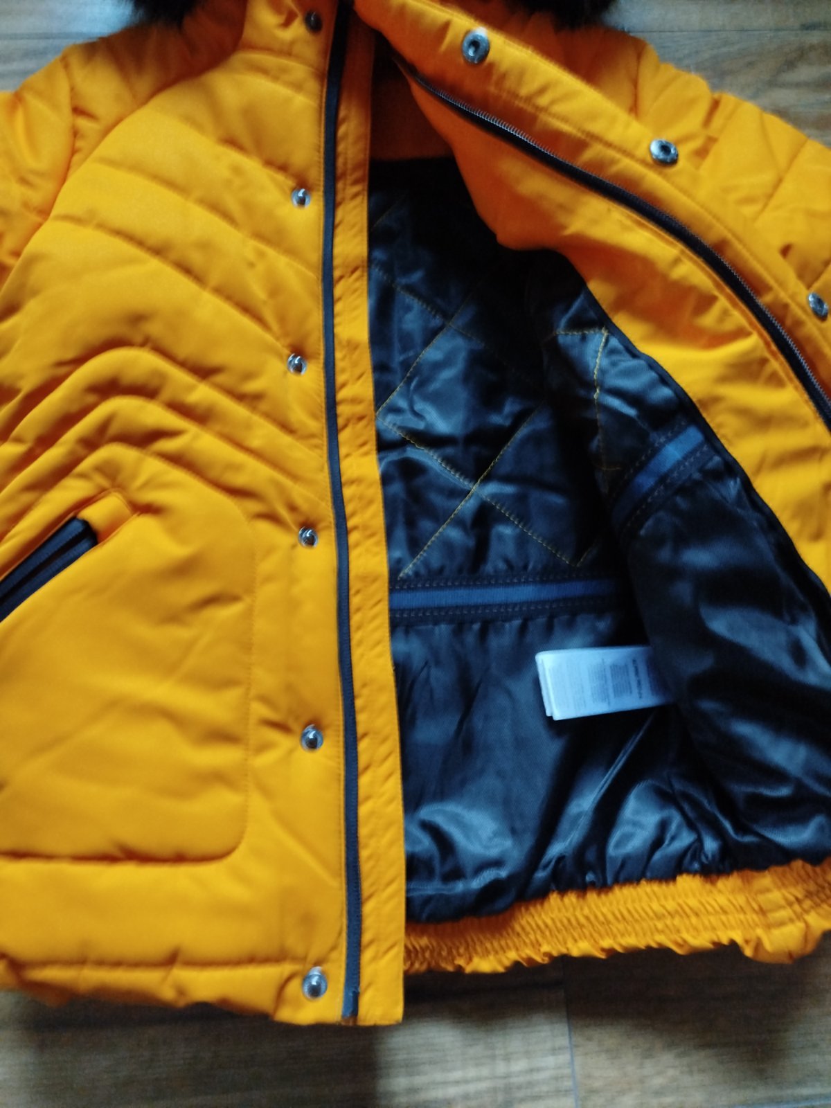 Raz použitá,ako nová. Bez poškodenia alebo vád. Krásna bunda v kombinácii horčicová a tmavomodrá farba. IBA OSOBNÝ ODBER V BRATISLAVE!!!!