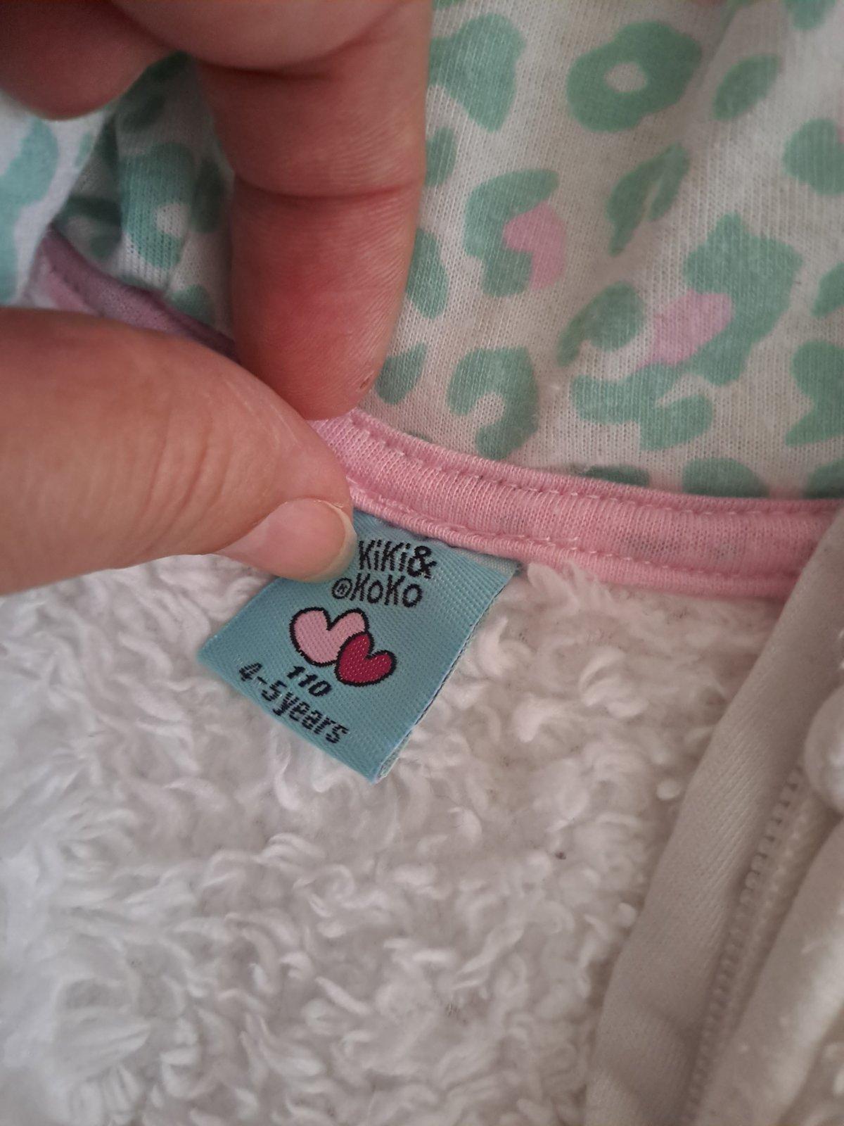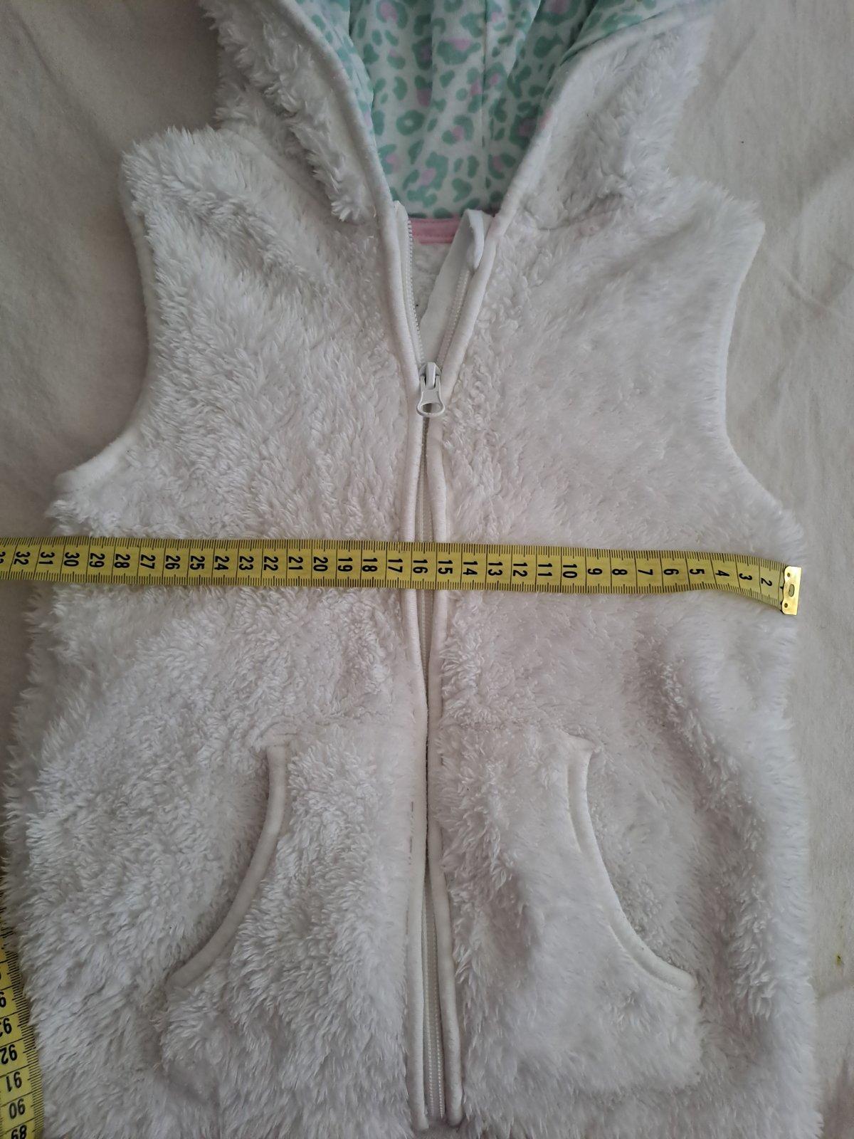 Teplá vesticka bielej farby, málo nosená, veľ 110, zapínanie na zips +2 vrecka...