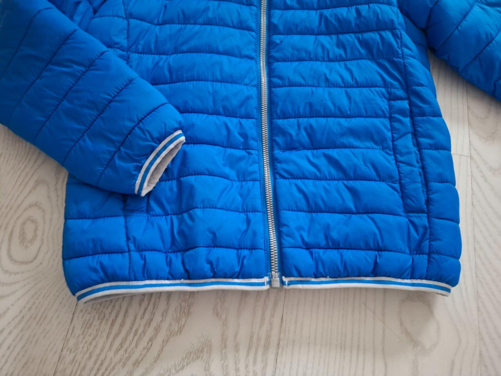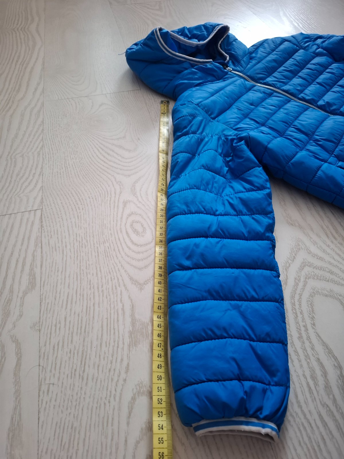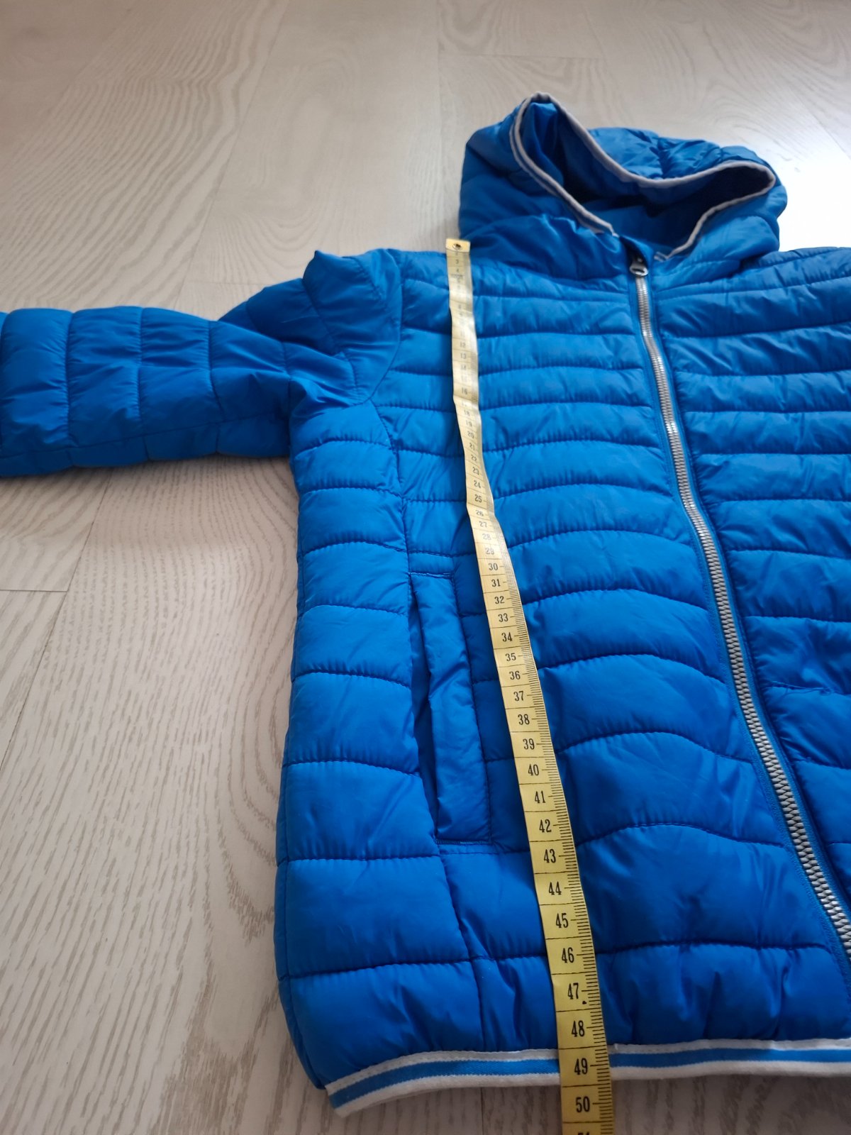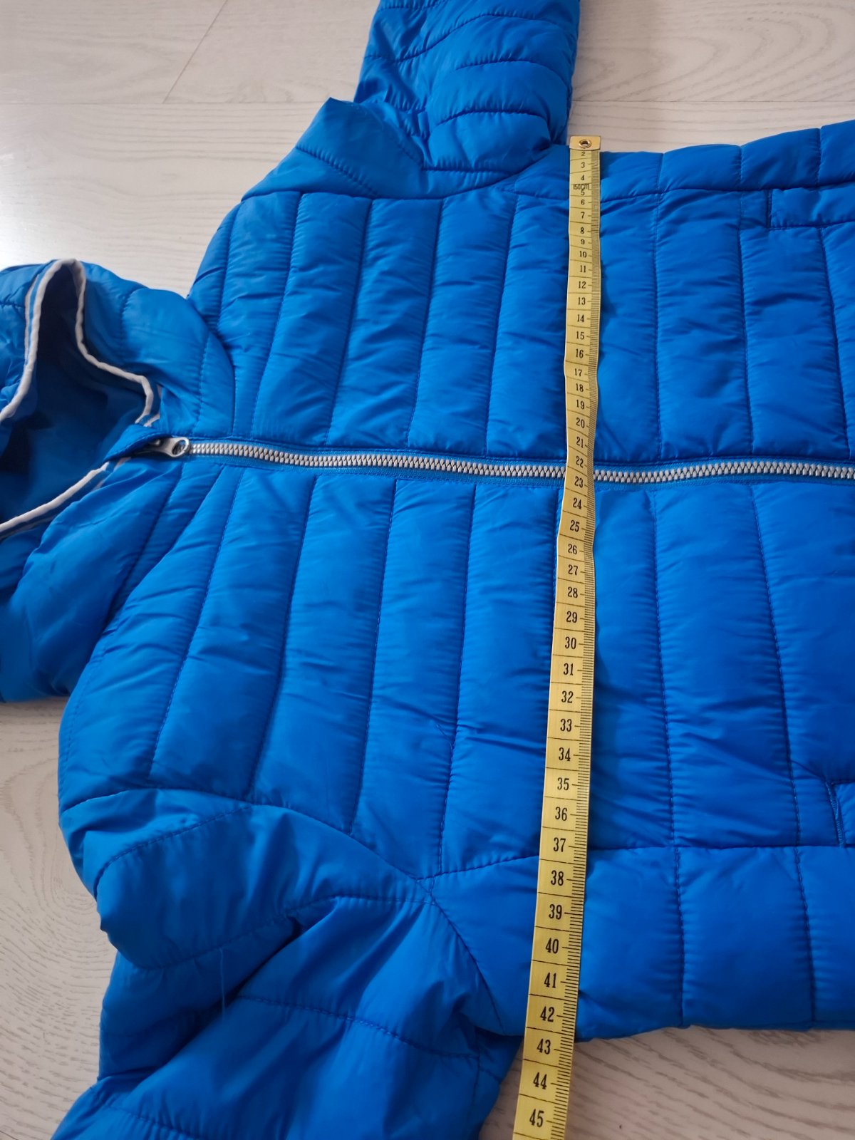 Prechodná bunda, štítok s veľkosťou odstrihnuty, ale myslím,že bola 122/128, rozmery sú na fotkách, na patentoch sa nájdu zmolky a vzadu na chrbáte zasita dierka, pozri na fotkách
