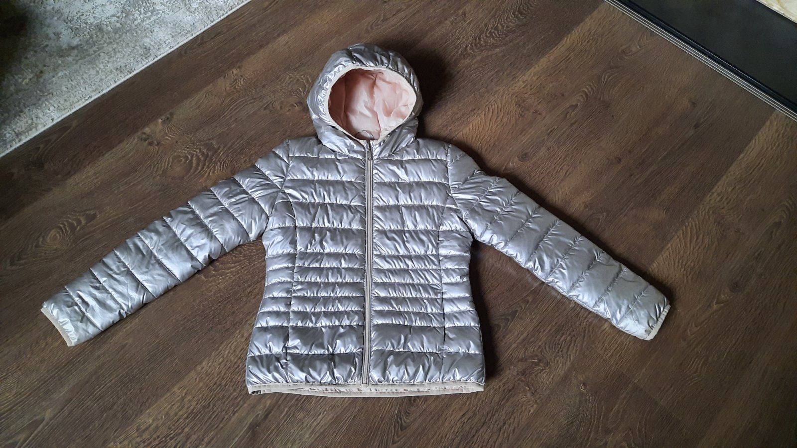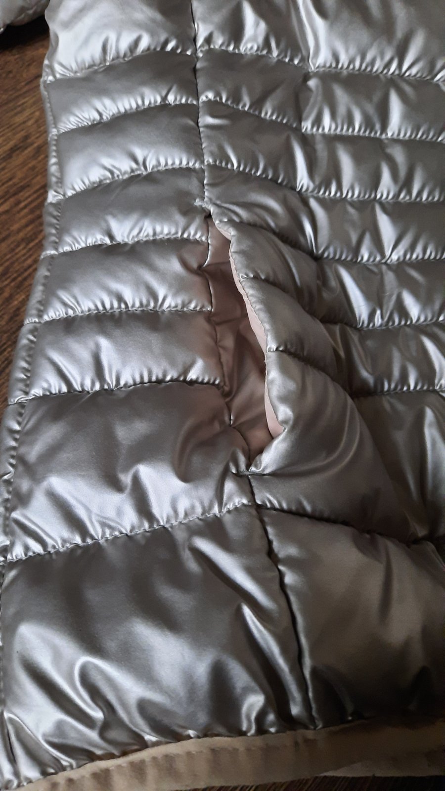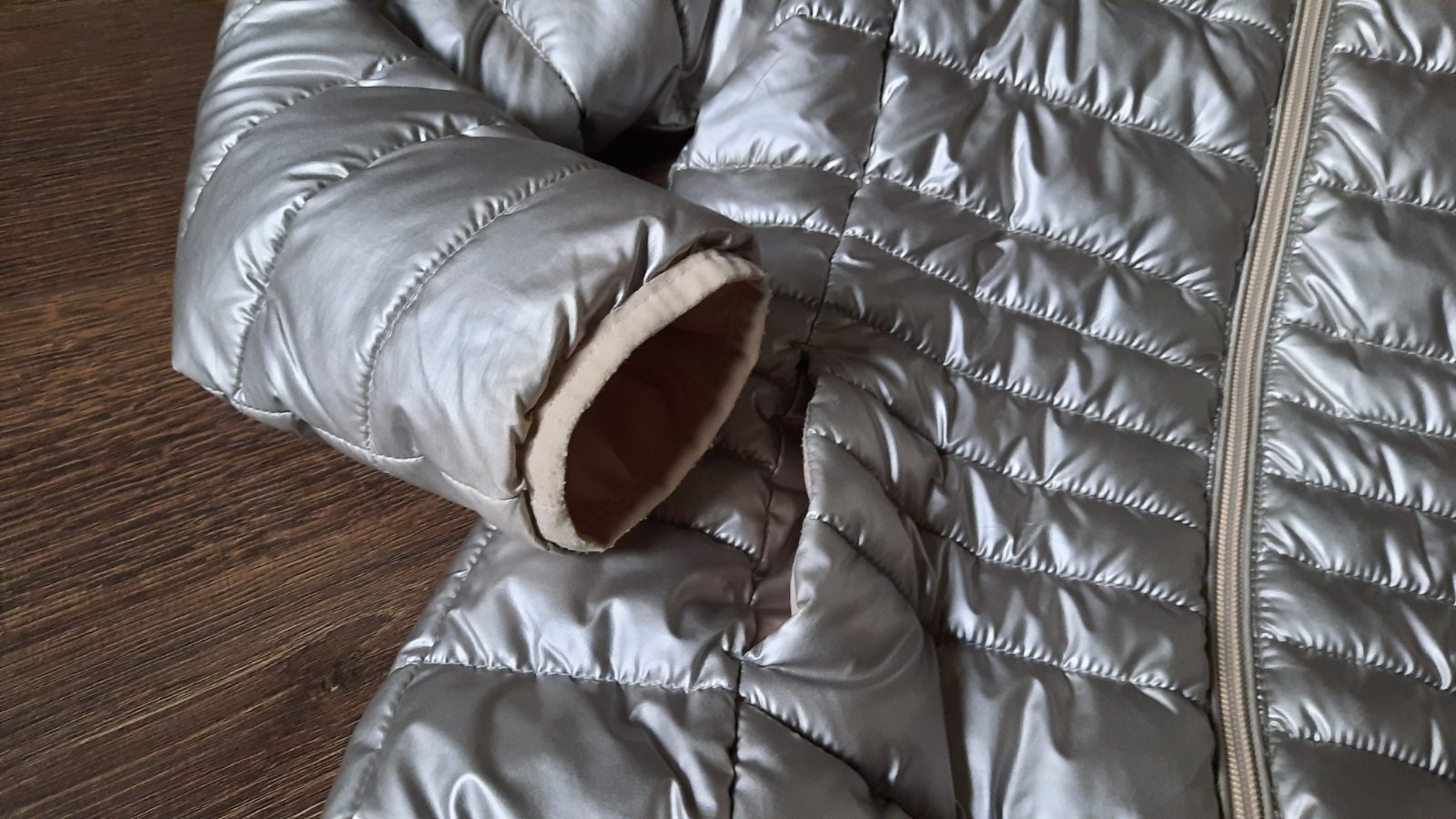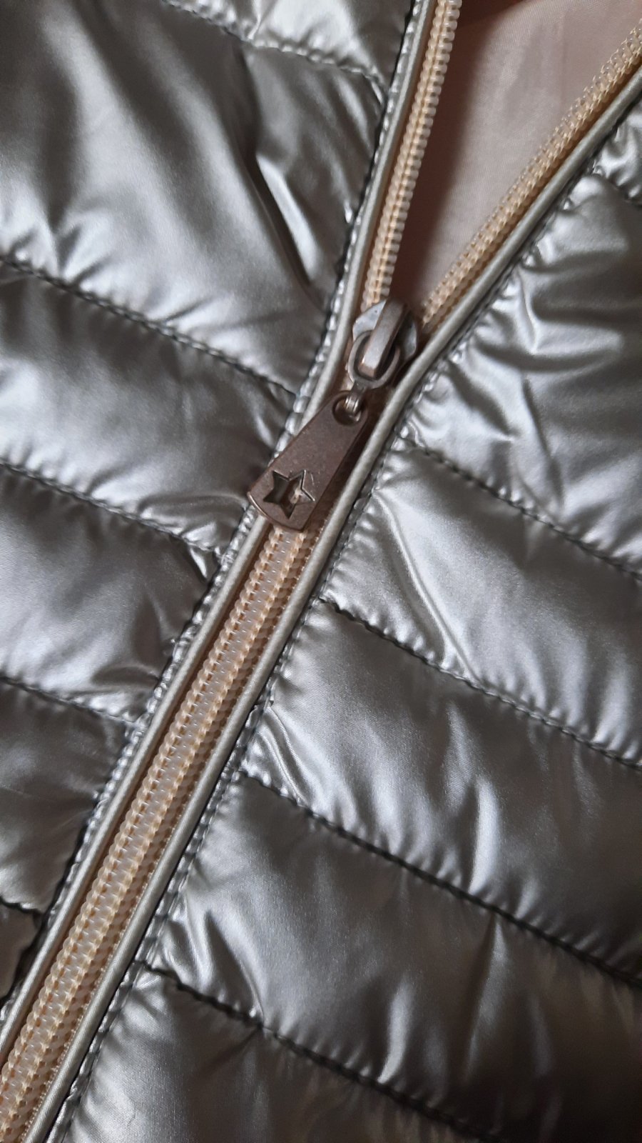 predám krásnu zimnú vetrovku farba lesklá šampaň - kupovaná nová, nosená len dcérkou. pekný strih, kapucňa pevná, vetrovka nepremokavá, zips funkčný, 2x bočné vrecká.