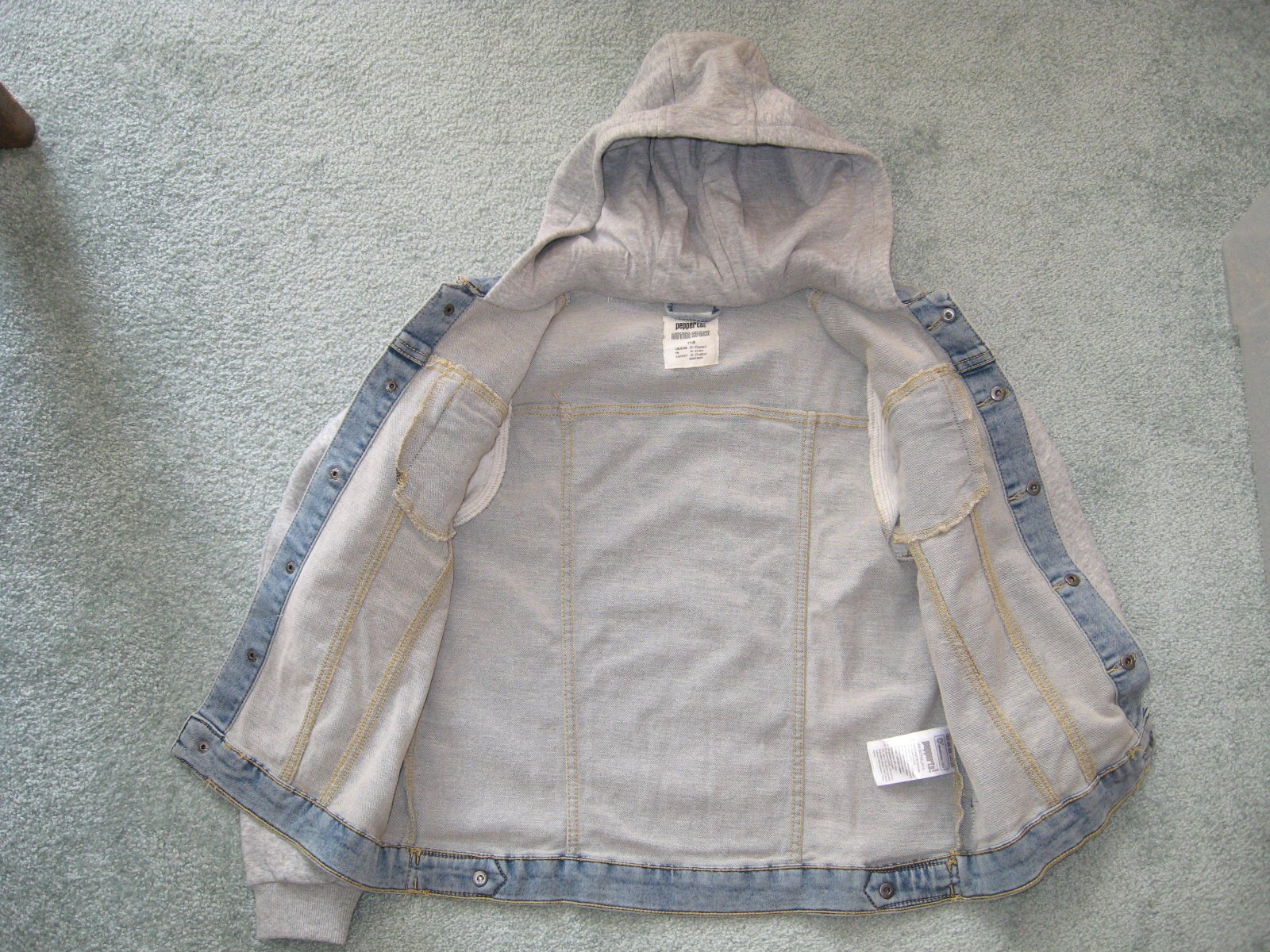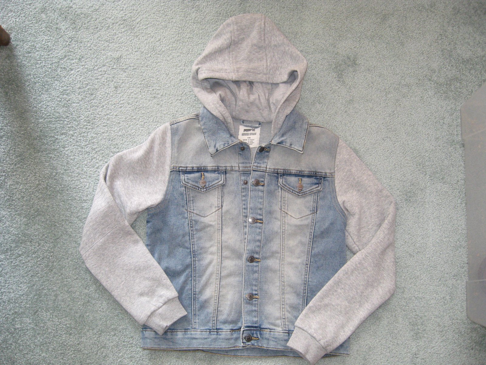 ako nová, syn ju mal si 2x na sebe, nestihli sme vynosit..zapínanie na cvoky..dlžka je 50cm, šírka je 44cm a rukáv od krku meria 68cm