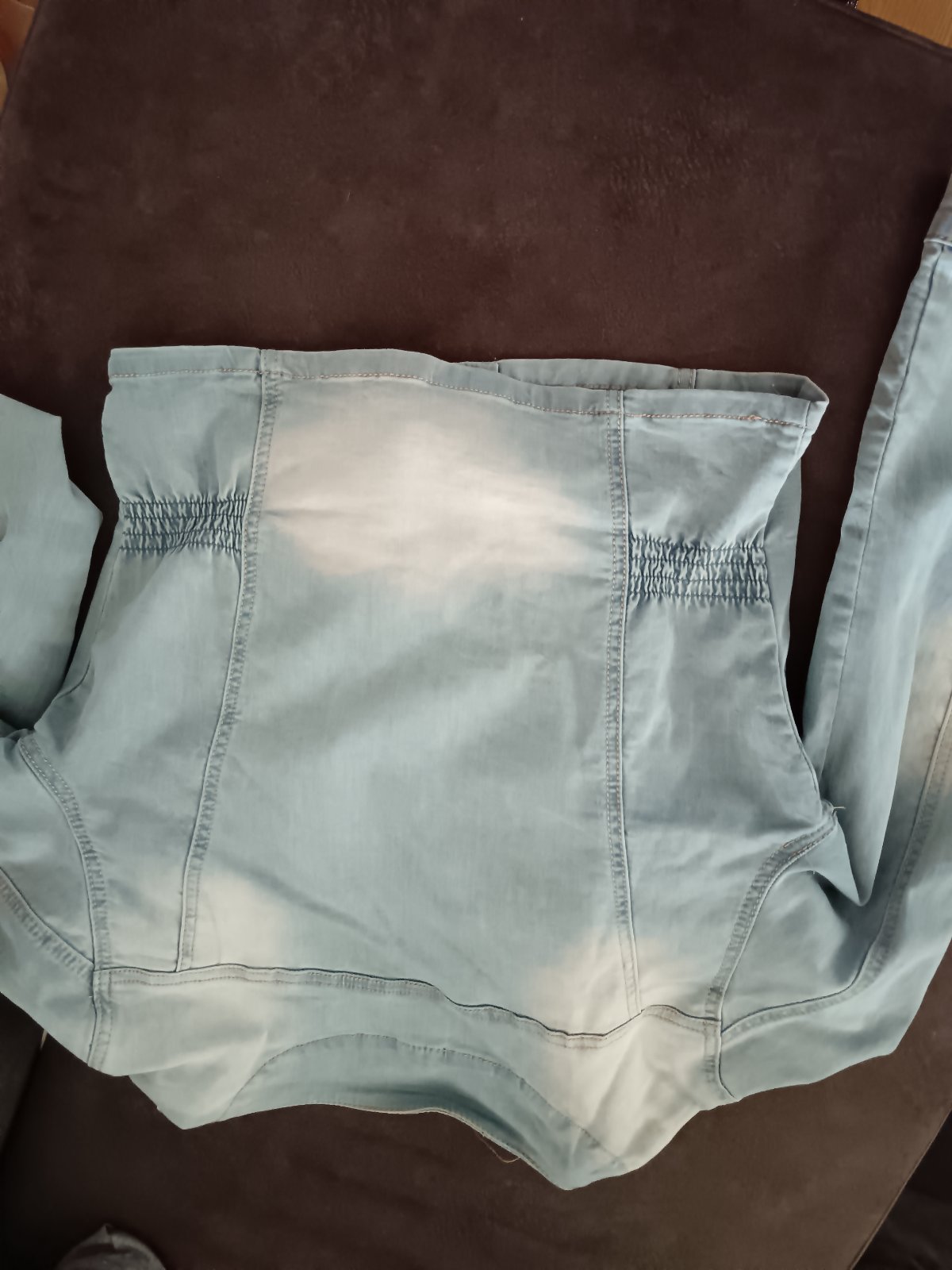 Jarná/jesenná vetrovka, farba je pekná modrá, s ružovými zipsami. Značka Willard. Šírka pod pazuchami 53cm, v páse 50cm, dĺžka meraná vzadu 73cm, rukáv 66cm.