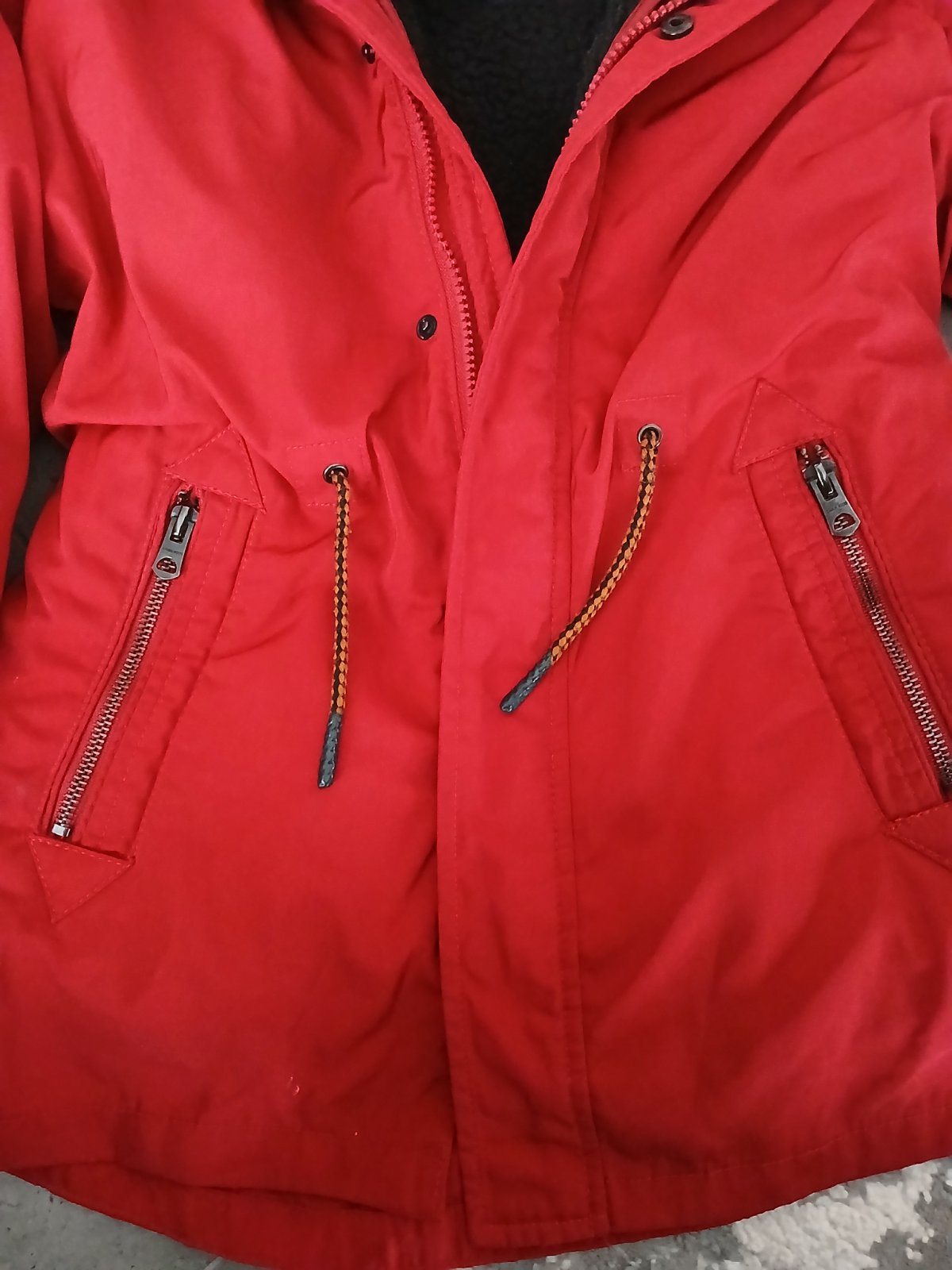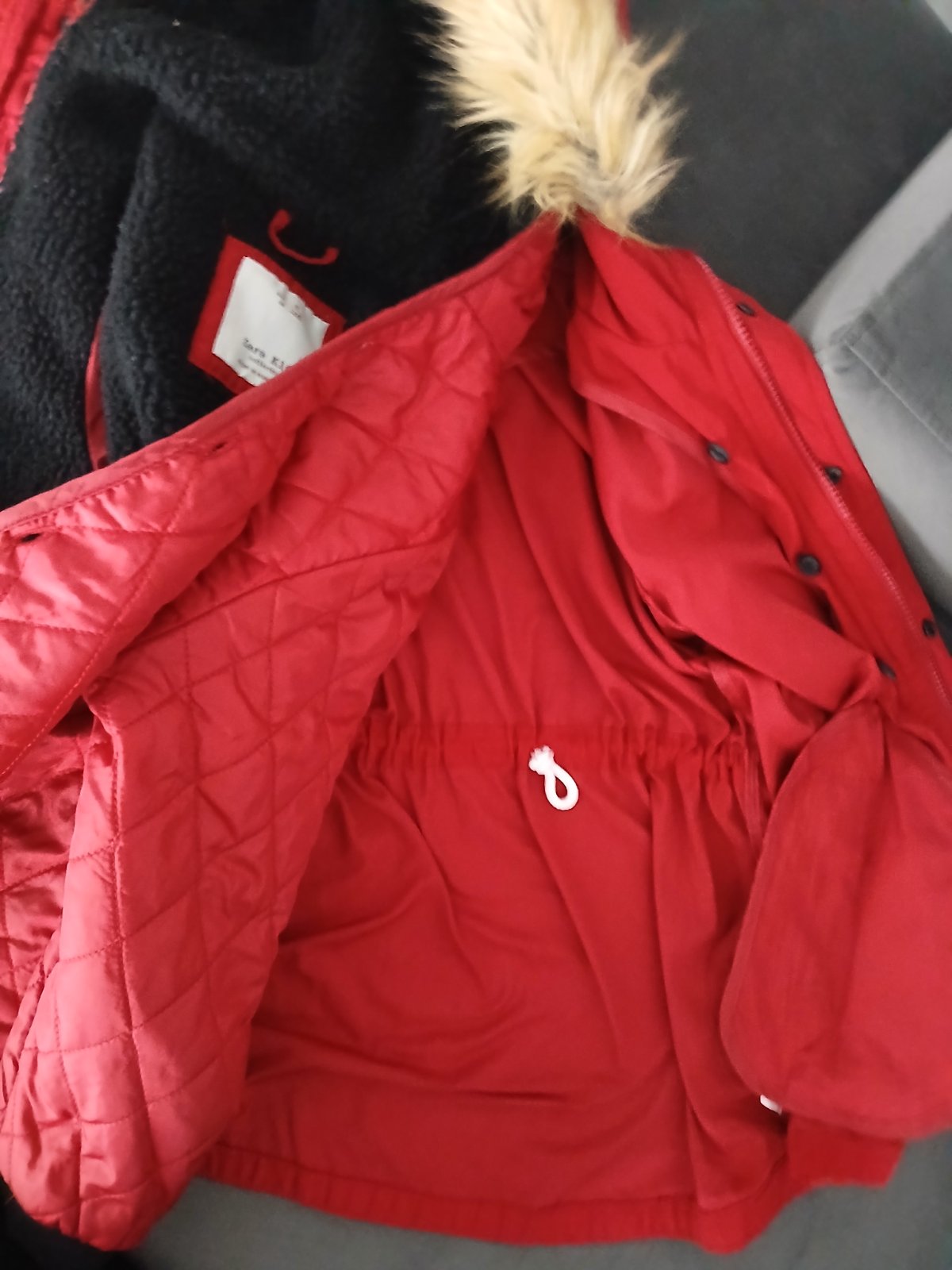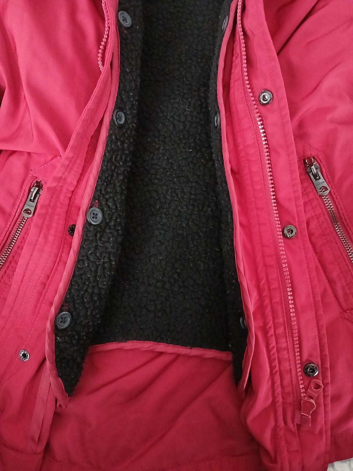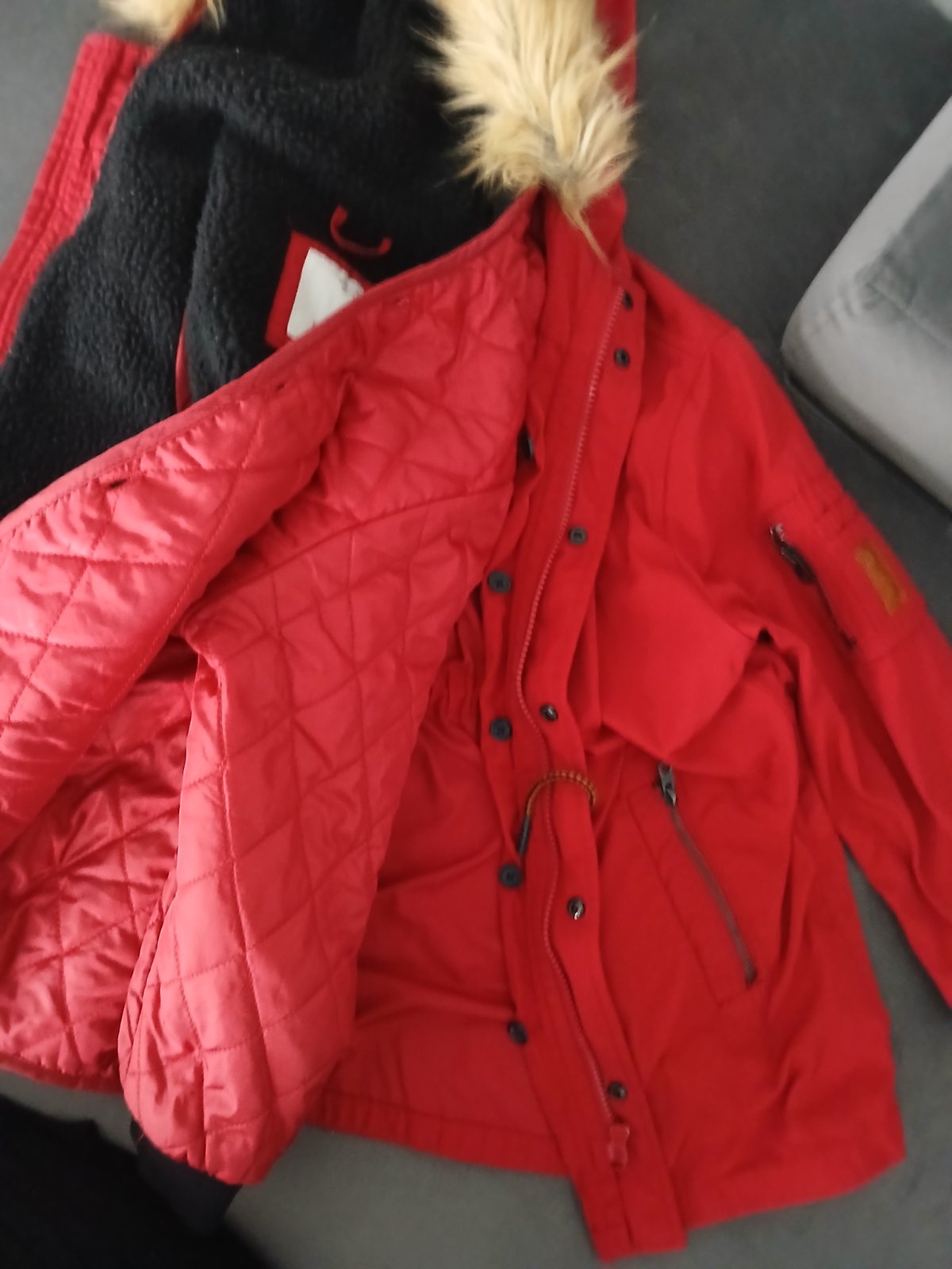 Úplne úžasná bunda vhodná na zimu a potom sa dat dolu celé teplé vnútro ktoré je na gombíky a môže byť na jar, lebo je to potom ako plášť.