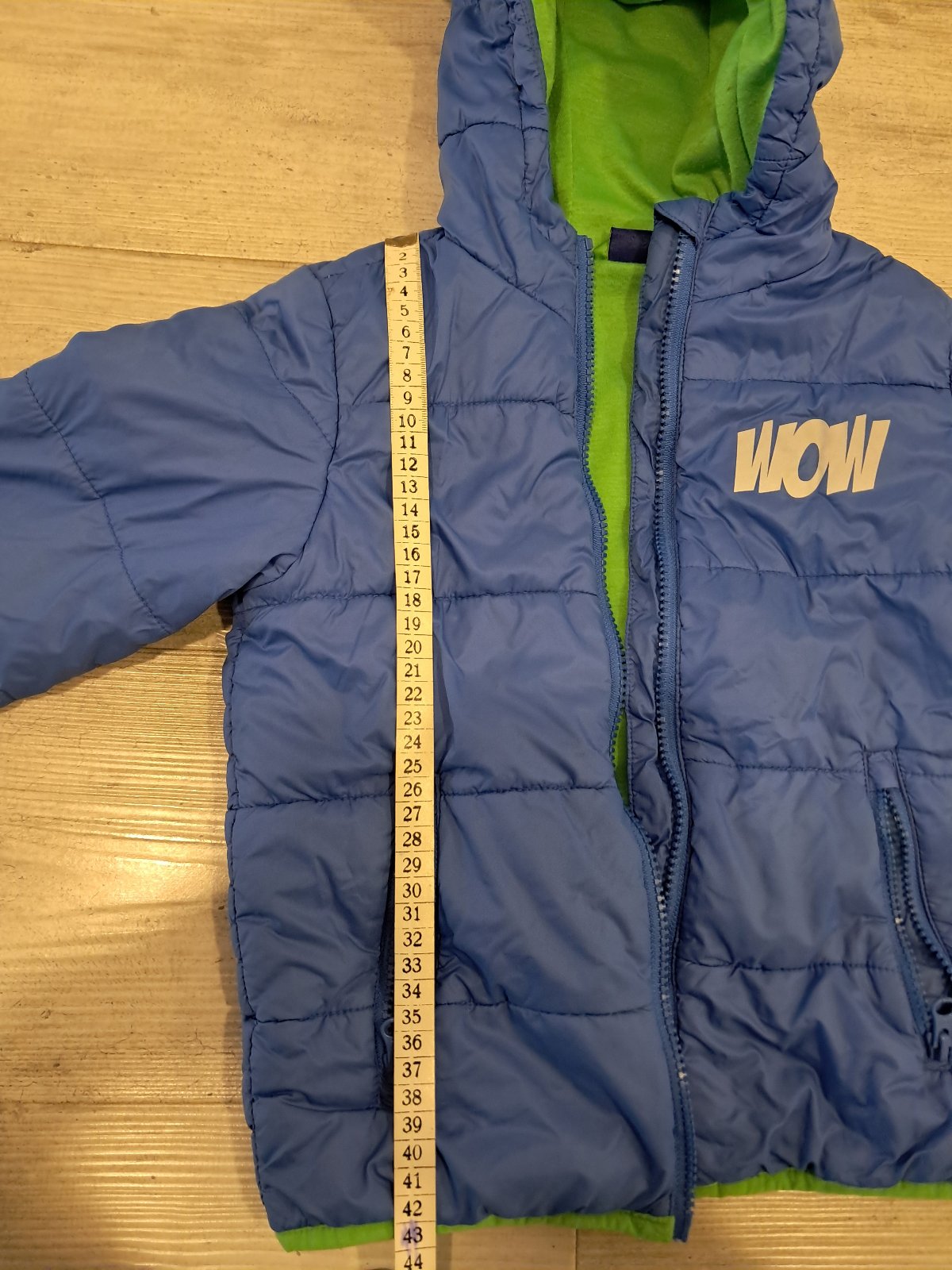Predám modrú jarno-jesennú (prechodnú) bundu, veľ. 116, pre 5-6 rokov, zn. LUPILU, s neodnímateľnou kapucou, s reflexnými prvkami vpredu aj vzadu, veľmi pekný stav.