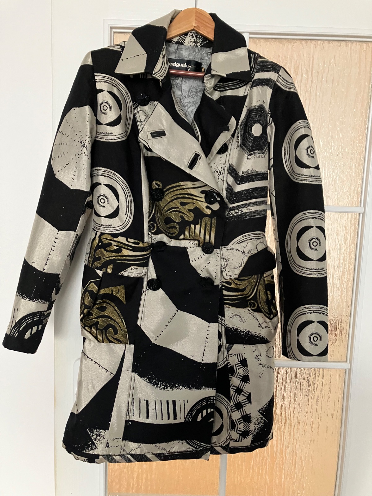 Pekný nosený stav. Známky nosenia žmolky a jemné zádery. Farba čierna a zlatá.