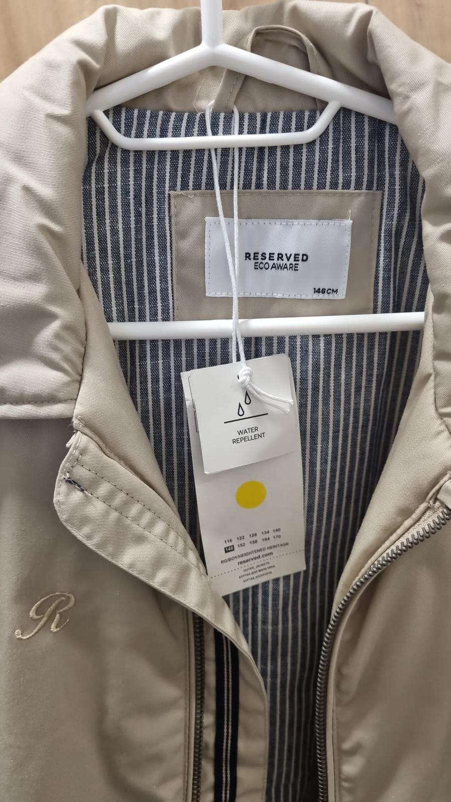 Predám úplne novú bundu č.146 zn. Reserved. S visačkou. TOP stav. Nenosená. Water repellent. Vhodná aj na slávnostnejšiu udalosť. Cena 22€.