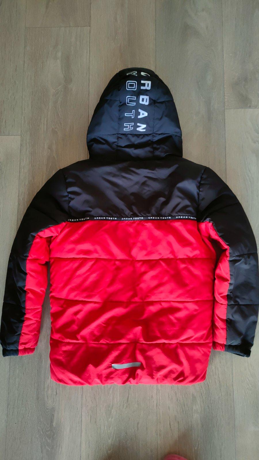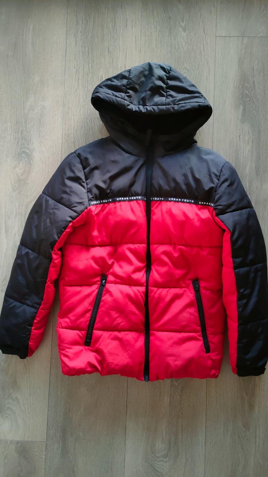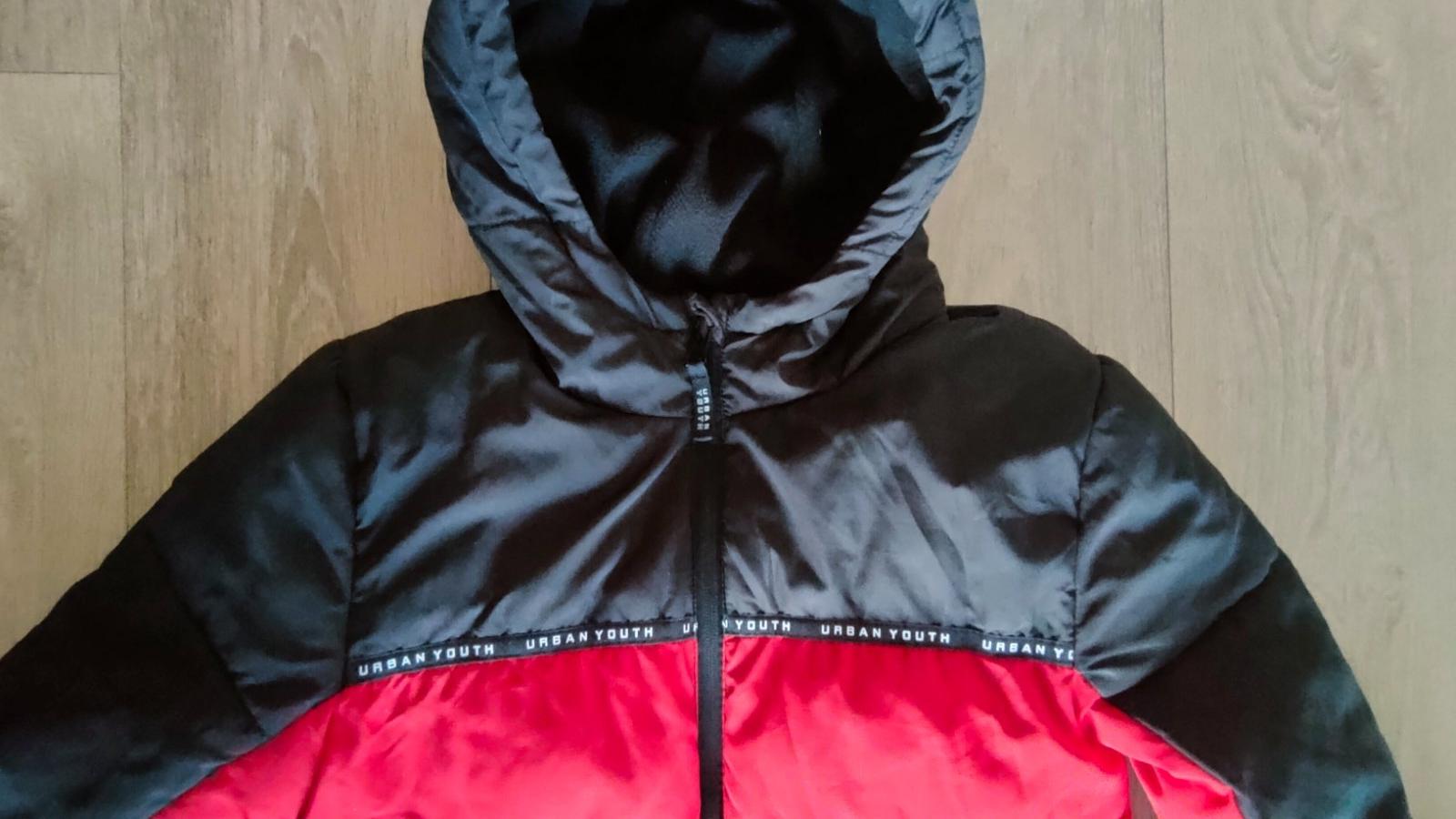 Teplá, s kapucňou a vreckami (aj vnútorné vrecko), zapínanie až ku krku (trochu ťažšie ide zips - je potrebné zapínať opatrne). Shower resistant, reflexný prvok v zadnej časti. Vhodné pre chlapca aj dievča. Zachovalý stav.
