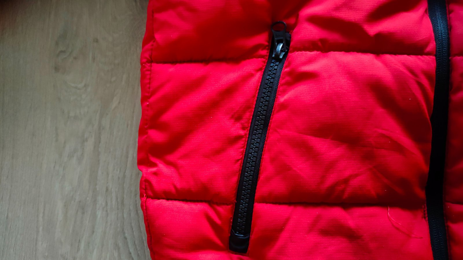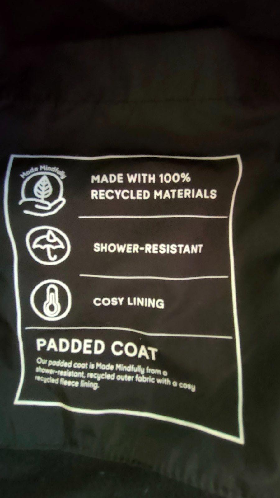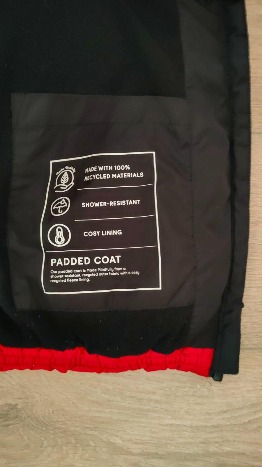 Teplá, s kapucňou a vreckami (aj vnútorné vrecko), zapínanie až ku krku (trochu ťažšie ide zips - je potrebné zapínať opatrne). Shower resistant, reflexný prvok v zadnej časti. Vhodné pre chlapca aj dievča. Zachovalý stav.