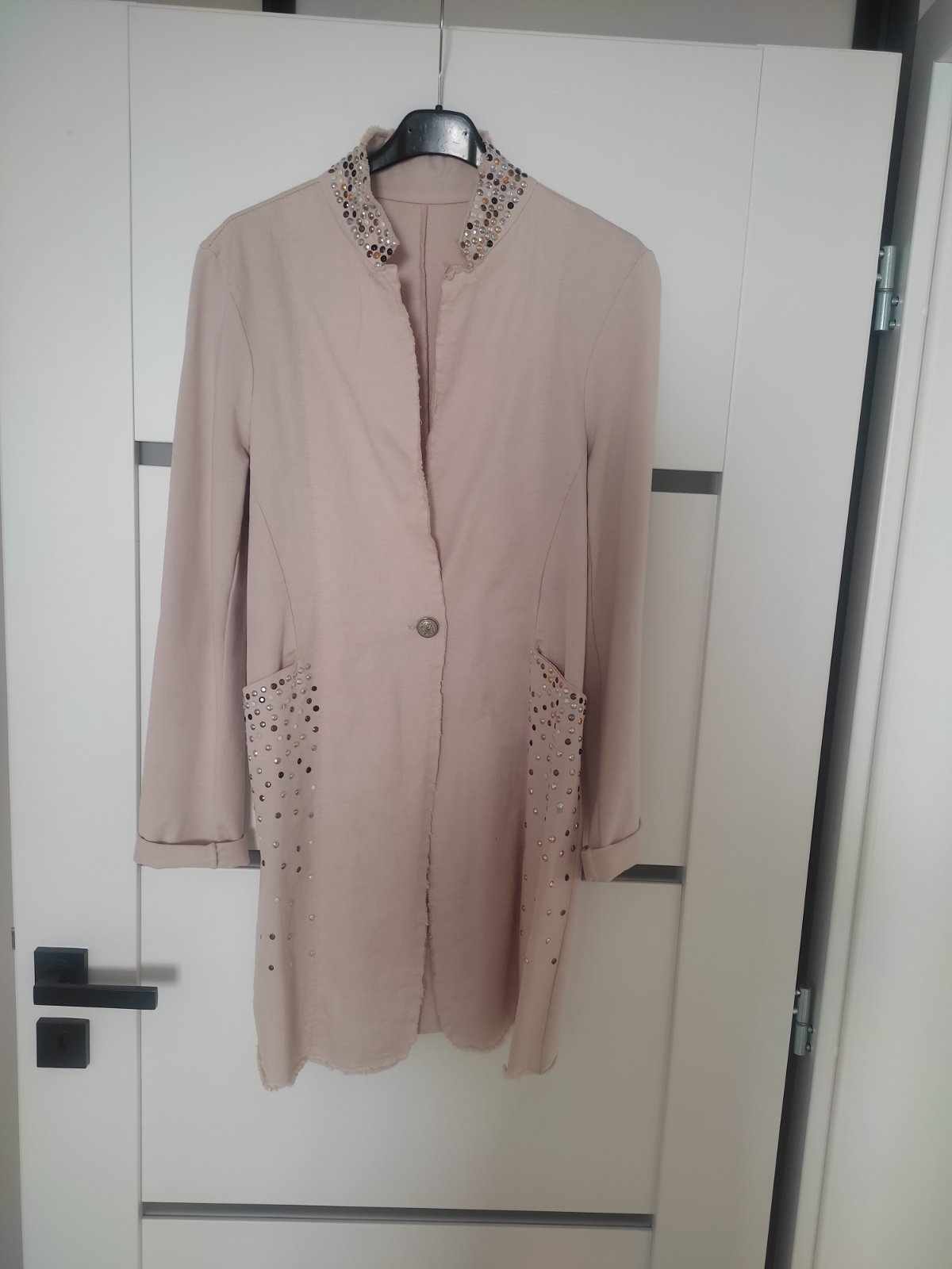 Jarné sako alebo prehoz,vo veľmi dobrom stave bez poškodenia.Celkova dĺžka 86cm,šírka pod pazuchami 50cm,látka mierne elastická.