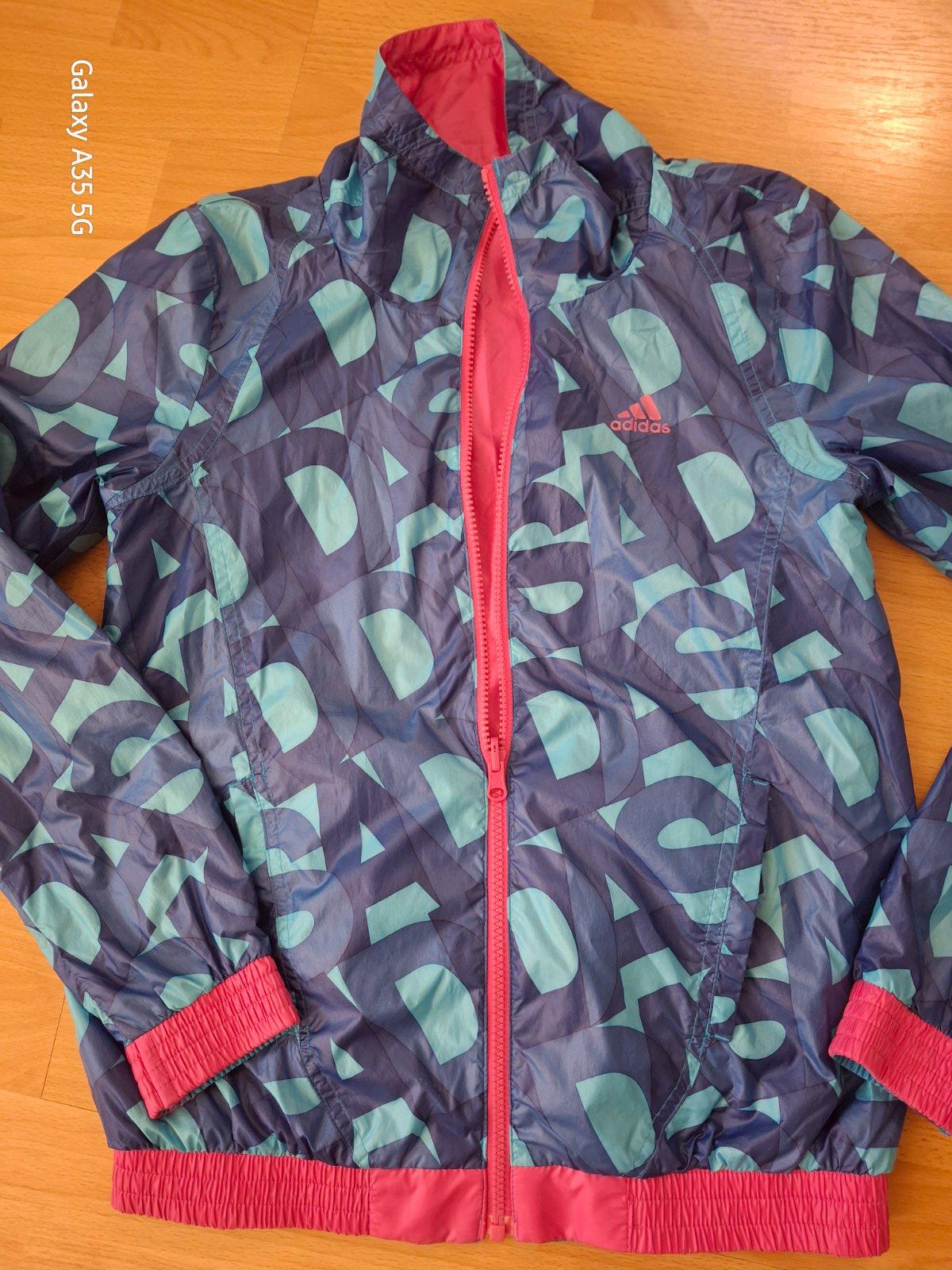Obe strany maju vrecka.Modra je s popisom adidas,ruzova jednofarebna.Super na bike,do batohu,lahucka.Velkot je pisana 34,moja nosila takto.Super stav.