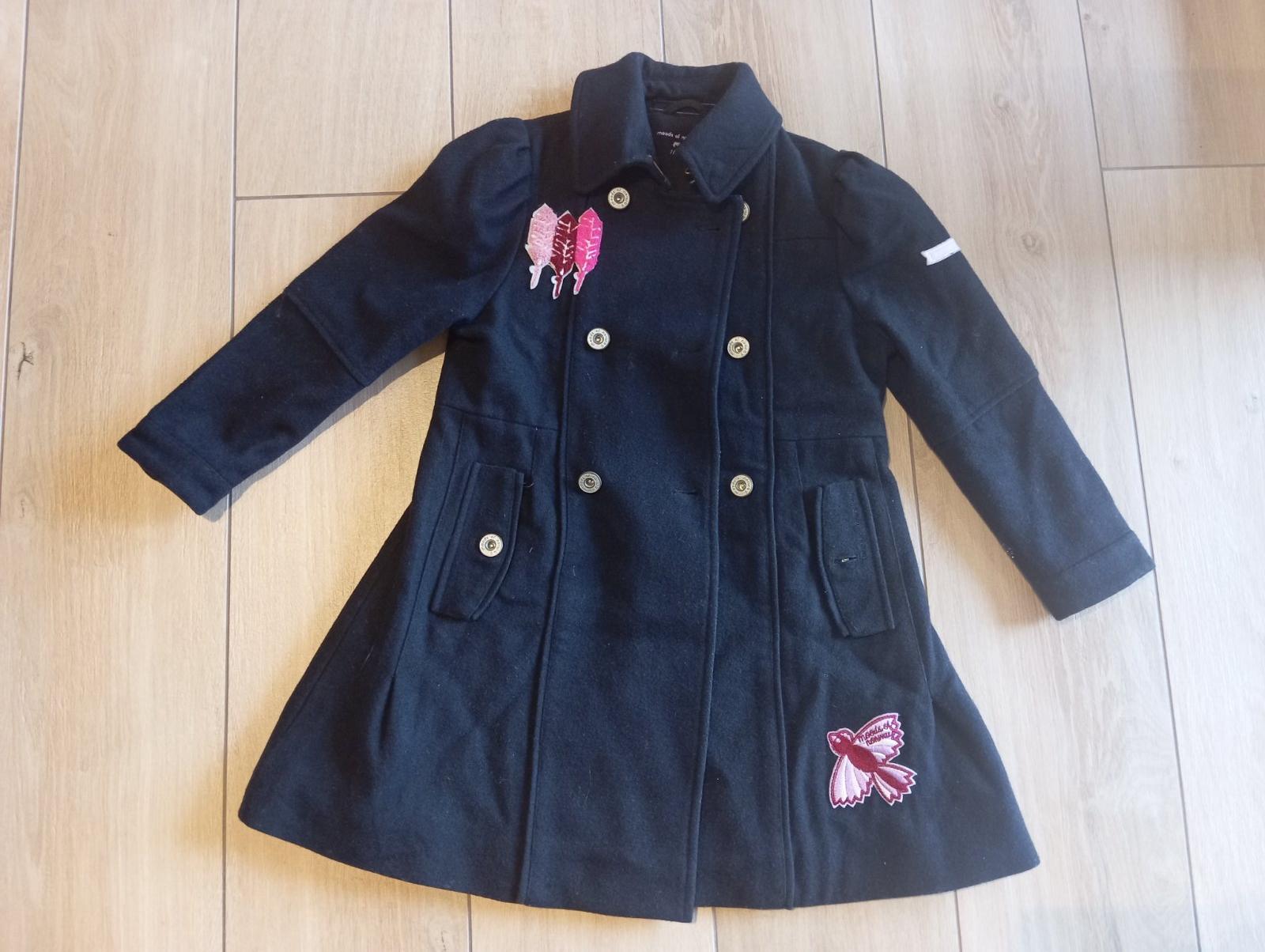 Elegantný kabát na jeseň, teplejšiu zimu, tmavomodrá farba, bez poškodení, nosený príležitostne.