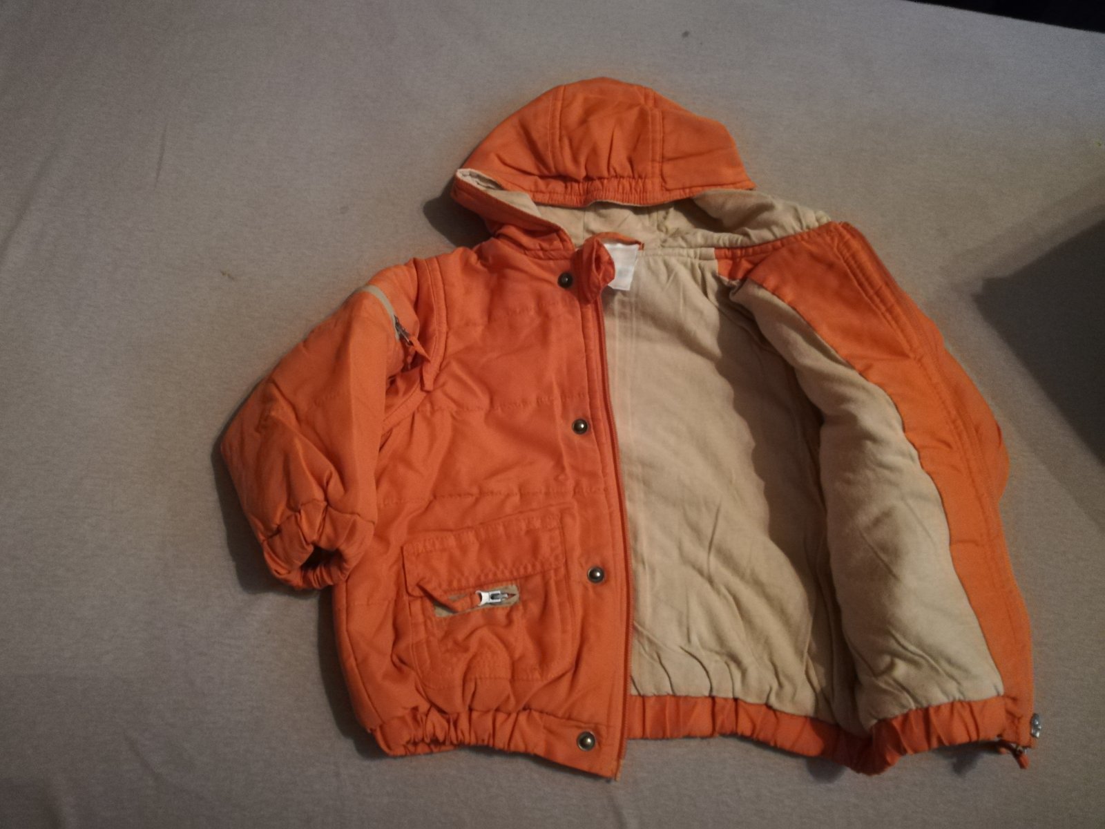 Ponúkam detské bundičky pre najmenších. Chlapčenské, vzhľadom k farbe môže byť aj pre dievčatko. Nosené ale zachovalé. Oranžová veľ. 80 a oranžovo bežovo zelelená veľ. 74. Cena 10 euro za kus.