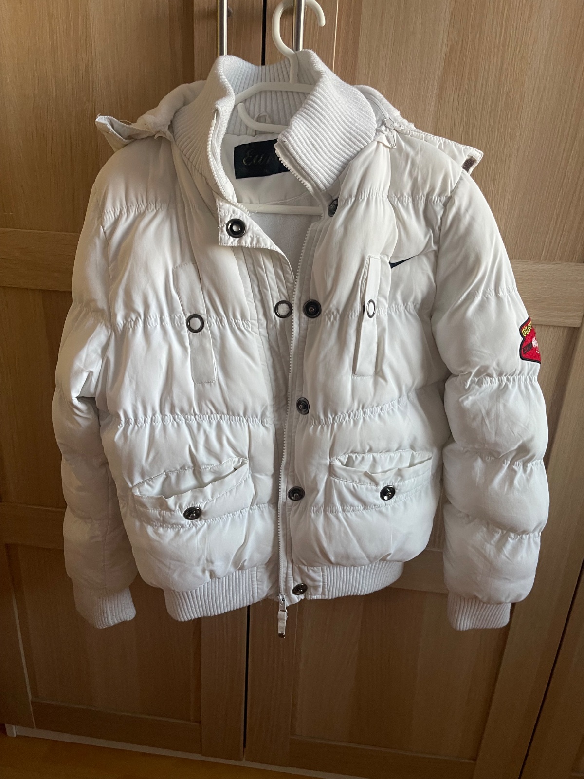 nosená zimná bunda bez poškodenia, má vnútorné vrecko, veľkosť M, značka Gate, kapucňa sa dá odopnúť ale kožušinka z kapucne nie