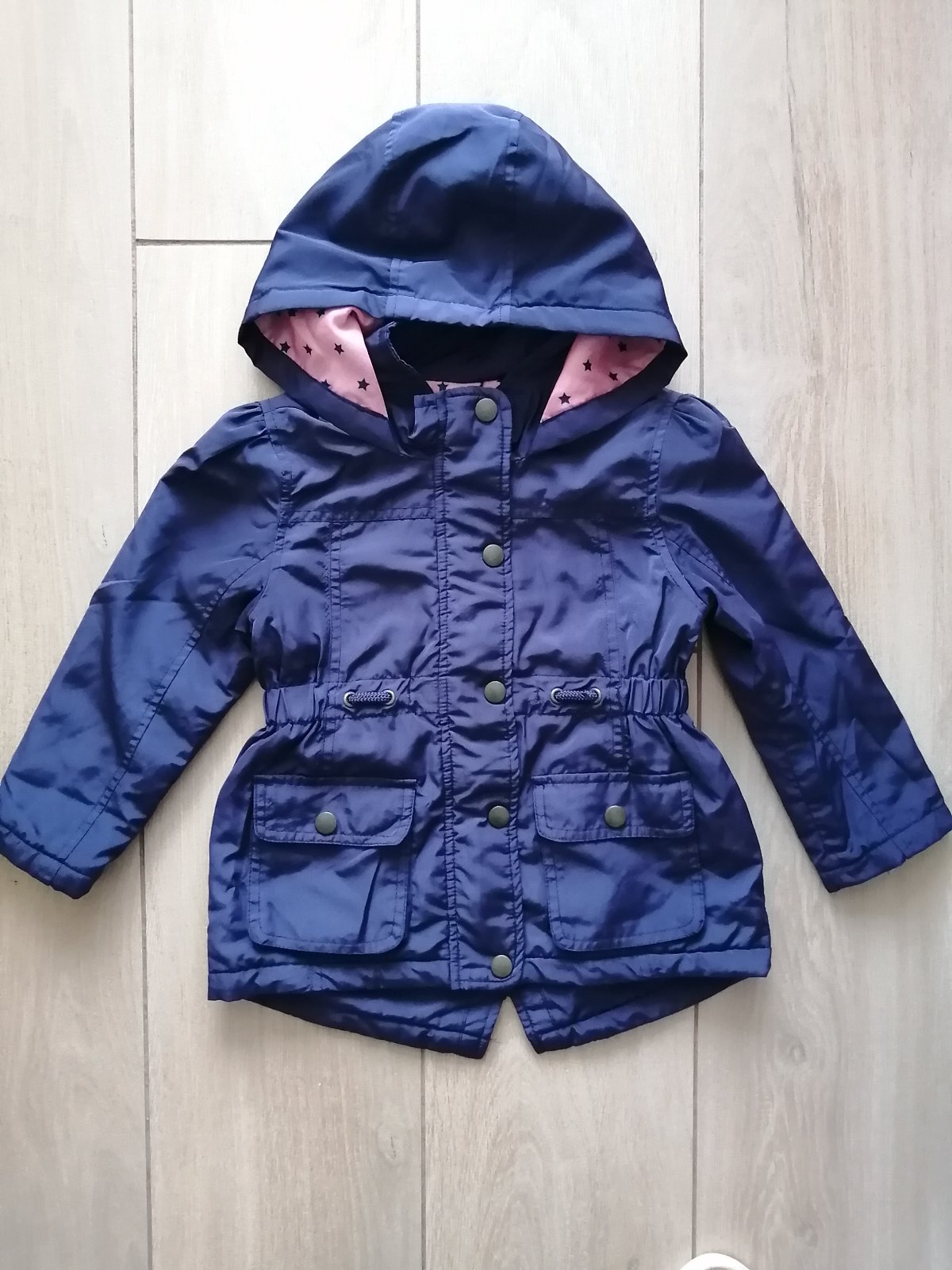 Jemne zateplená, vzadu predĺžená, určite sa nájdu nejaké drobné známky používania, ale nič vážne, má zips aj cvočky
