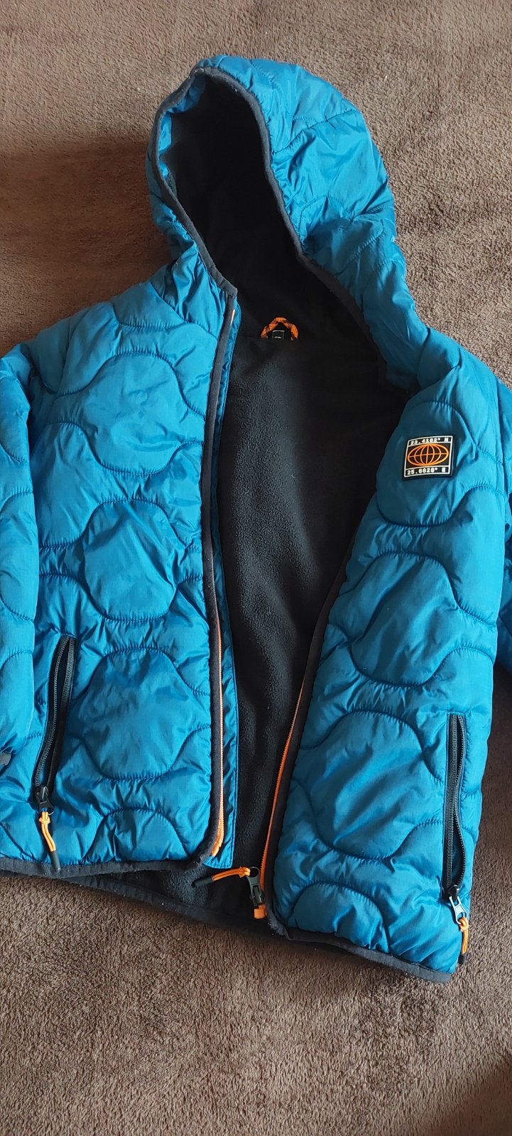 bunda pekny noseny stav, pisana velkost 122, dlzka 47cm, sirka 40cm, dlzka rukav od ramena 45cm odporucam na miernejsiu zimu