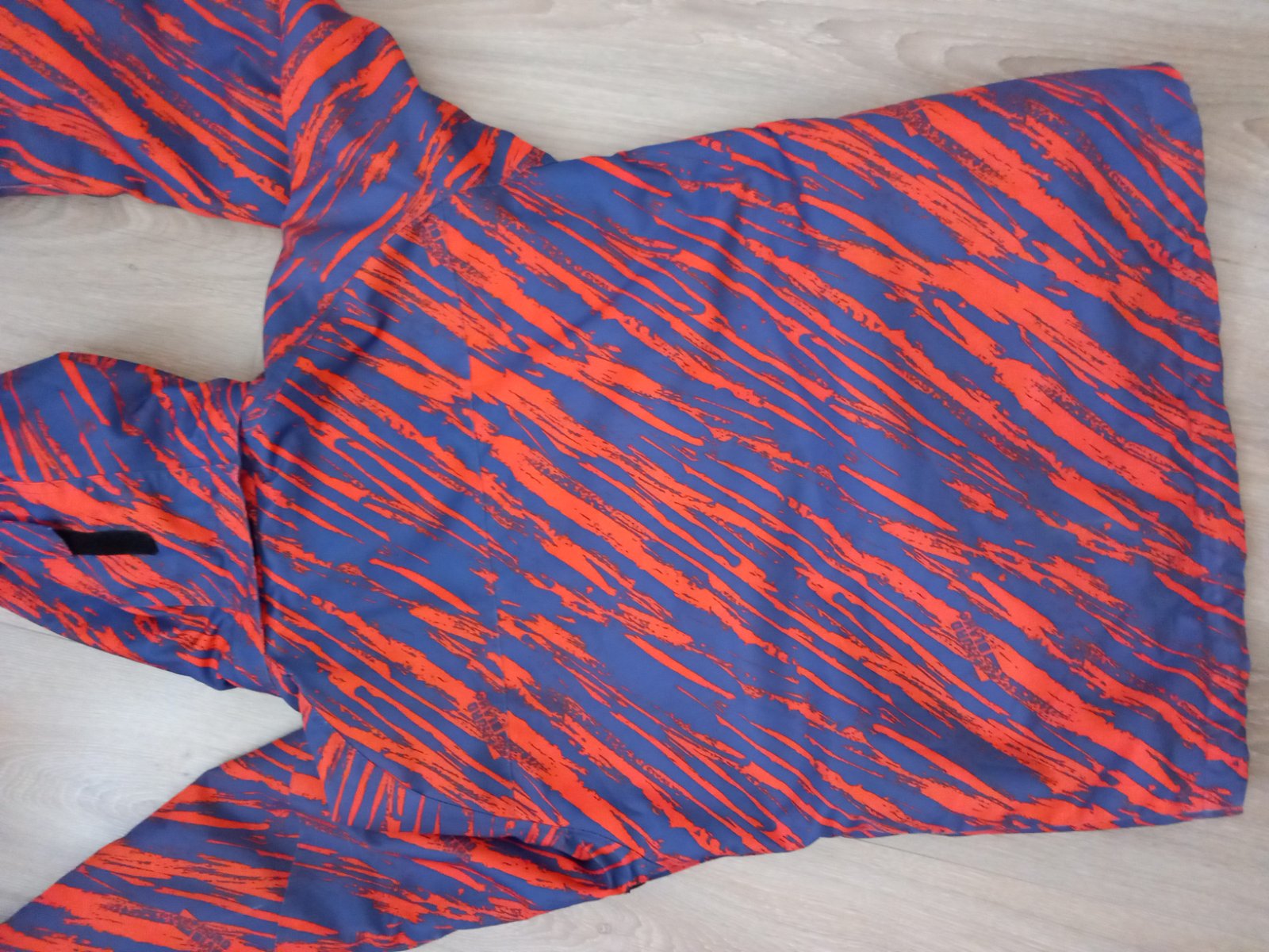 Krasna športova bunda, nepremokavá, so sneznym pasom, na lyže, aj na iné zimné športy, pekne prepracovaná, kopec detailov a vreciek, je to dvocislo 146152, farba taka uni, oranzovo- kralovska modra, d 58/63, s 47, rukav 65 cm
