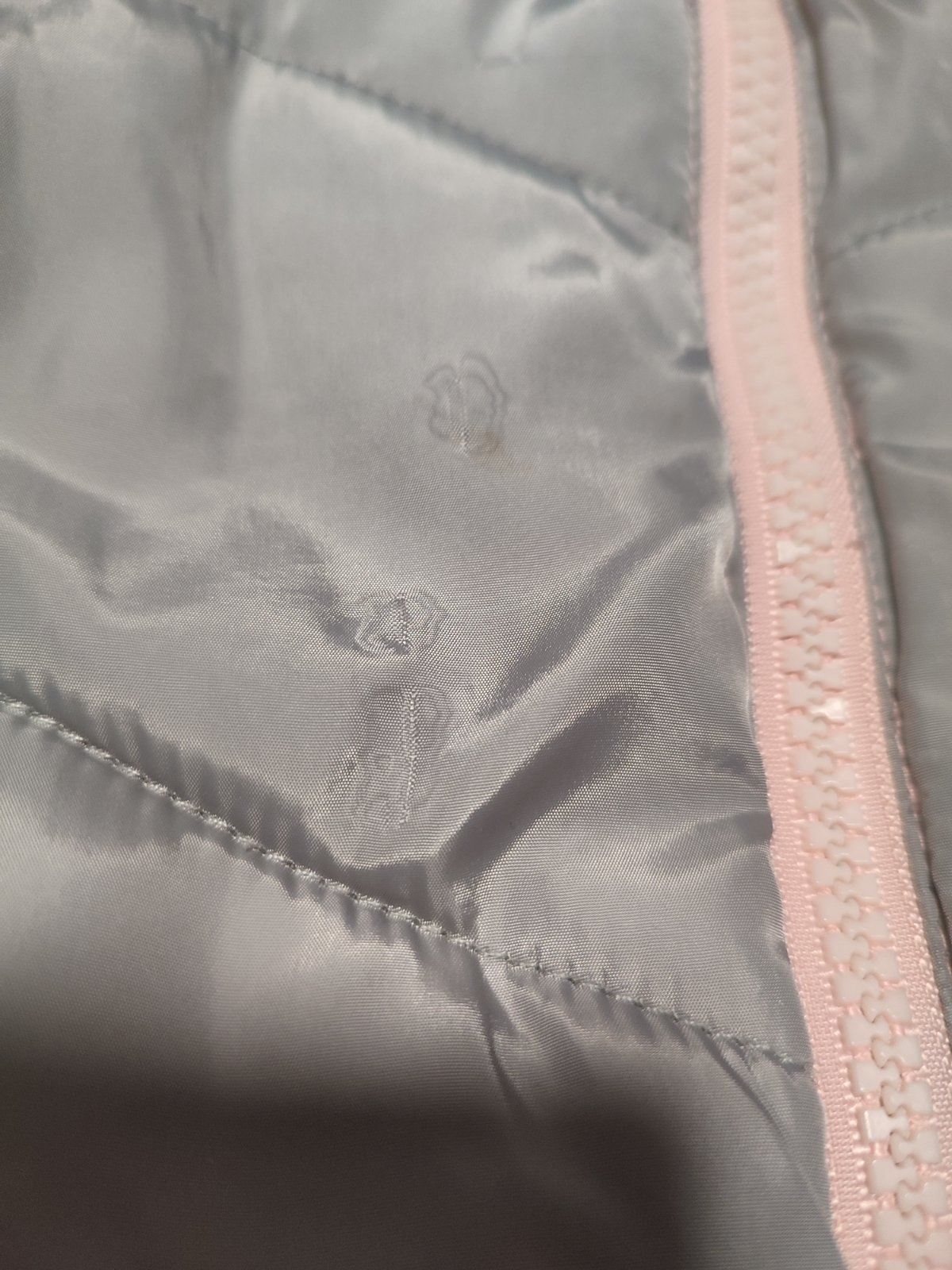 Ma fľaky/ vyblednute miesta a jedno vrecko ma vnutri potrhanu podsivku.Zips funguje.