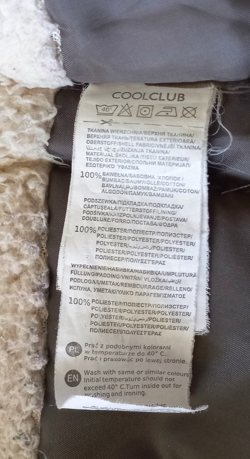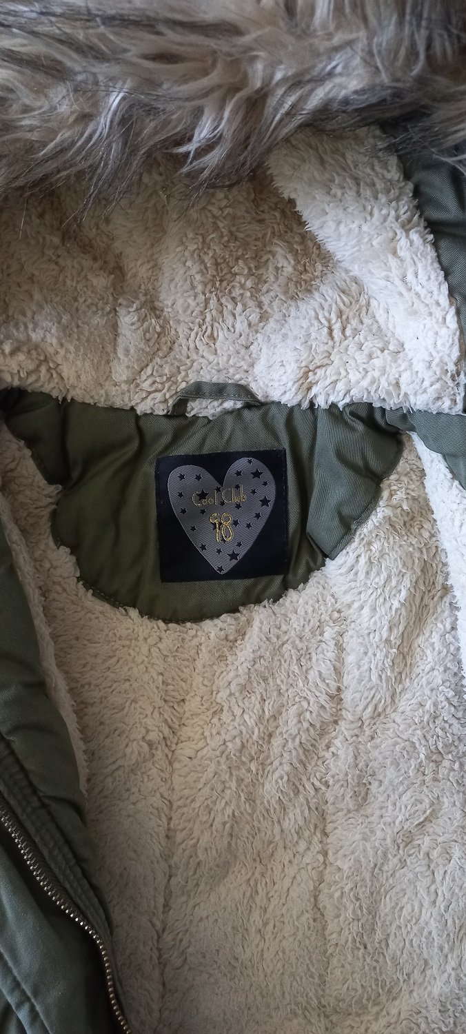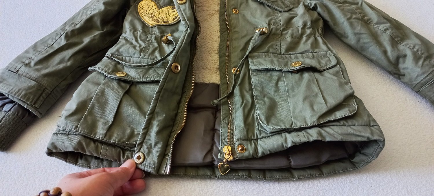 Zimná bunda, khaki zelená so zlatými doplnkami značka CoolClub, veľkosť 98, nosili sme aj vo veľkosti 98/104. Nosená na striedačku s inými bundami, nepoškodená, top stav. Rukávy ukončené patentami, dajú sa stiahnuť (viď foto), aj v páse sa dá stiahnuť. Kožušinka sa dá z kapucne odopnúť. Máme viacero detských vecí, môžete si zostaviť vlastný balíček. Pri kúpe viac vecí, sa rada dohodnem na zľave.