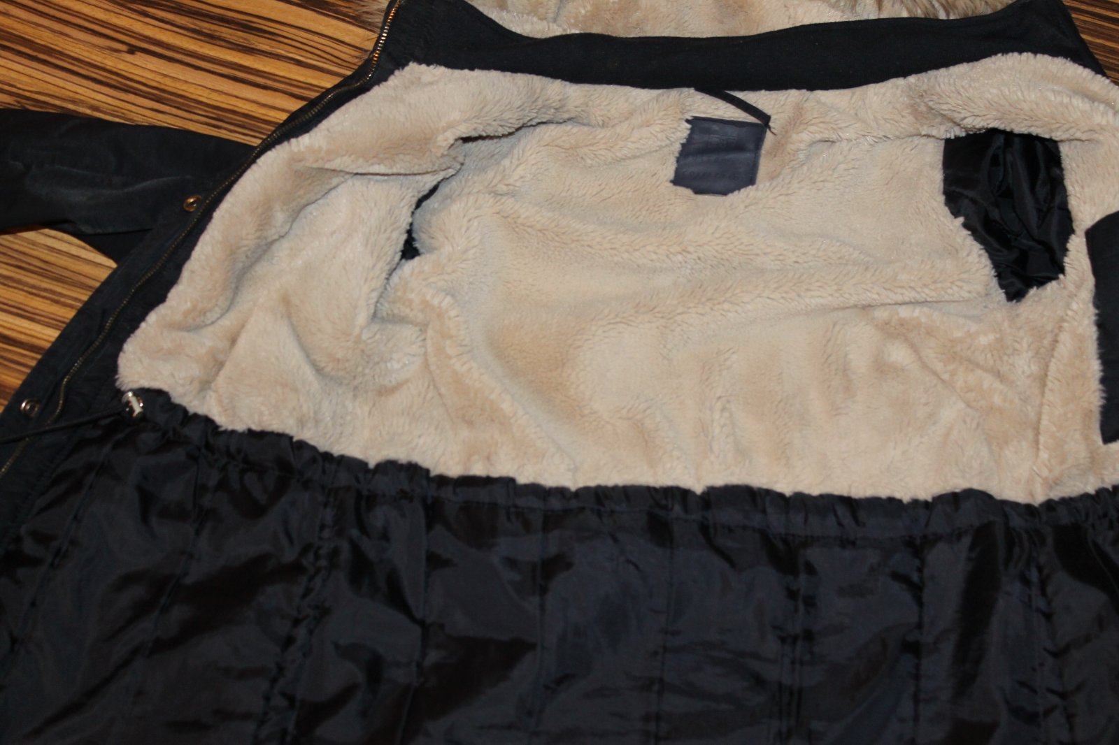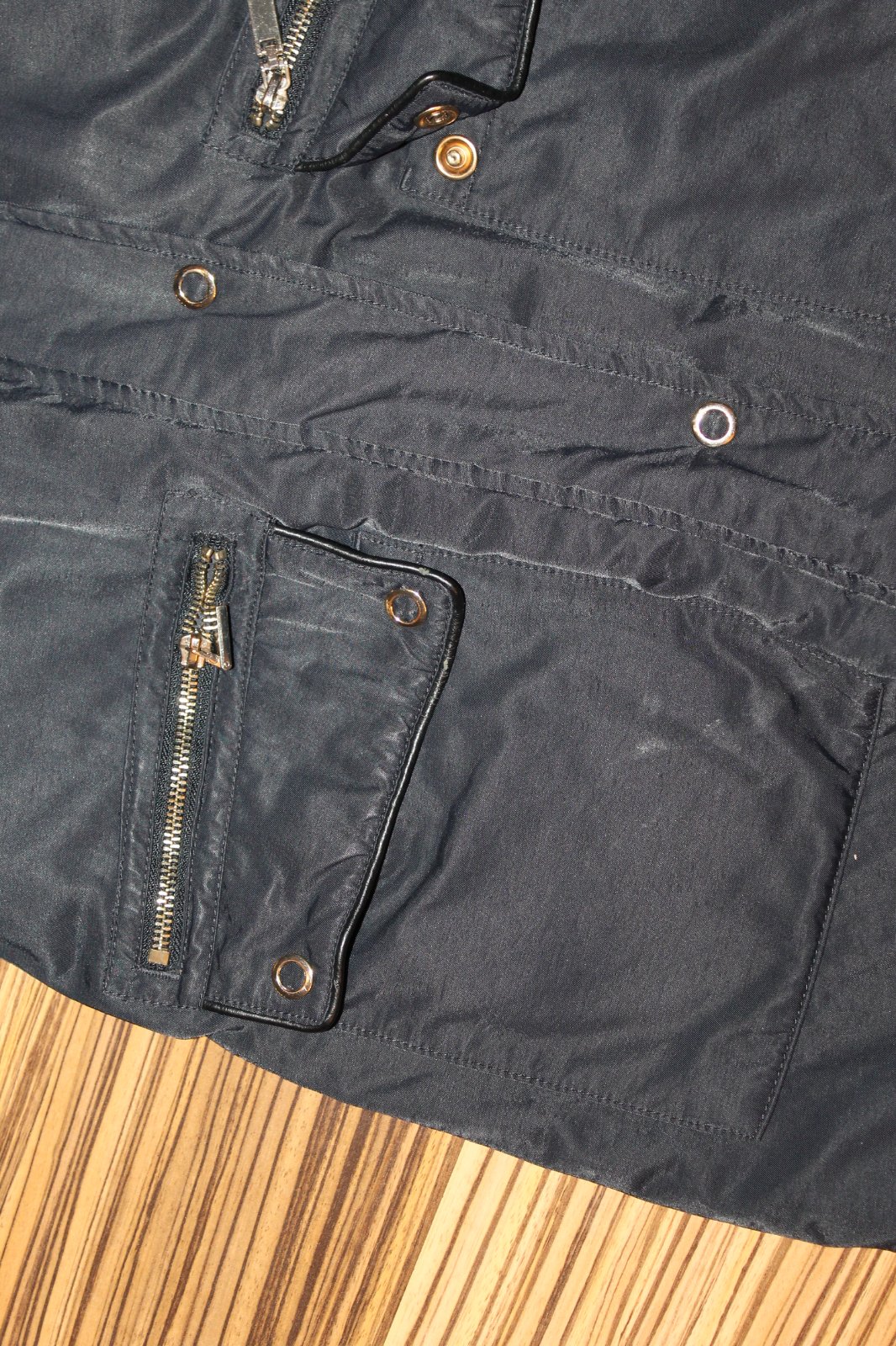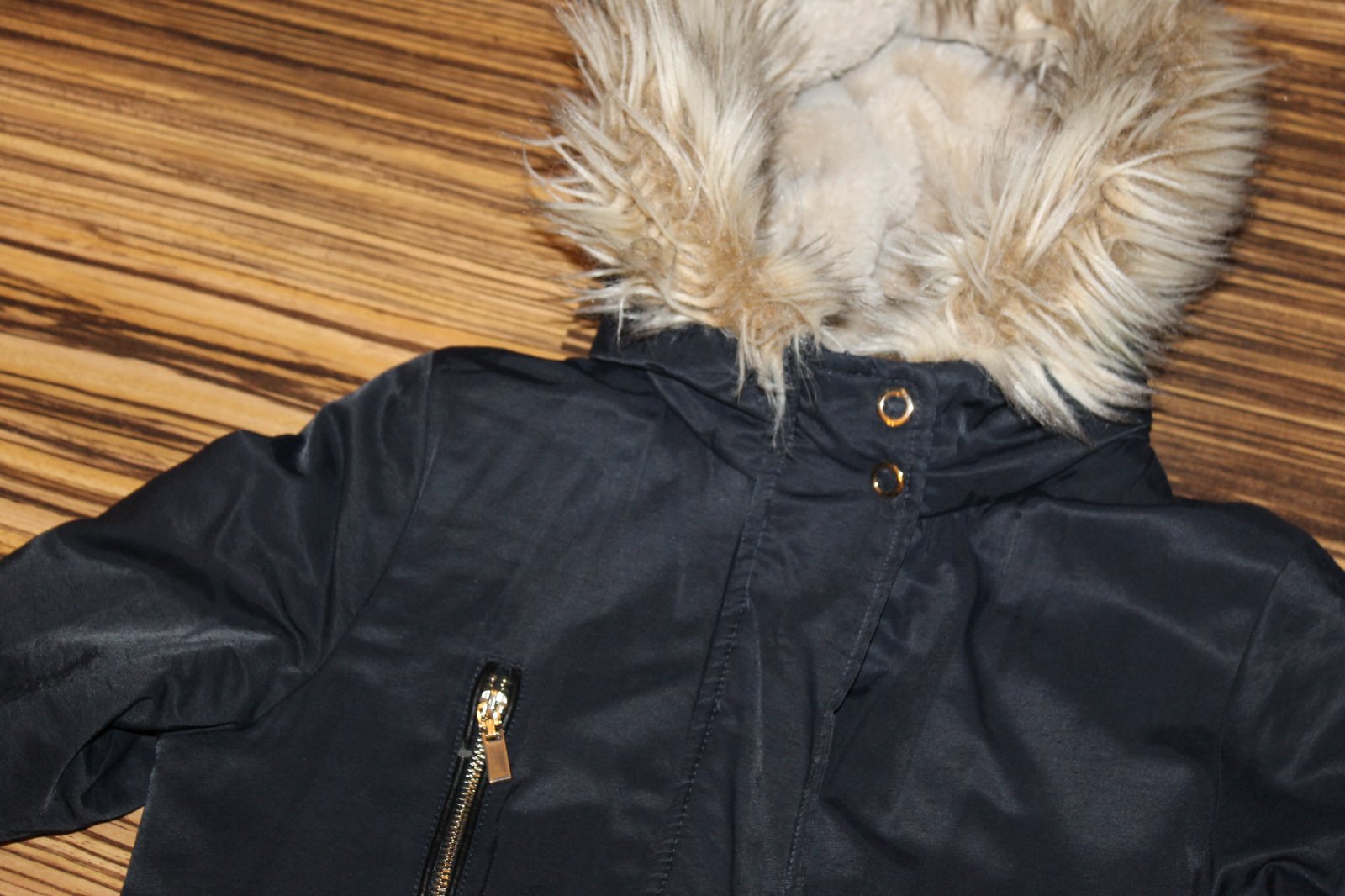 Dámska Zimná bunda/parka so sťahovaním v páse. V super nosenom stave, bez vážnych poškodení, teplučká. Tmavomodrá mierne lesklá tkanina. Veľ. XS, RO: š cez prsia 2x 47 cm, pás 2x 44 cm, boky 2x 53 cm, dl. 75 cm, rukáv od krku 72/49 cm spod pazuchy. Váha 1 130 g.